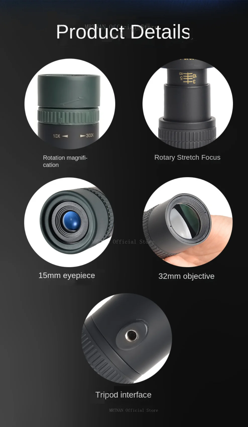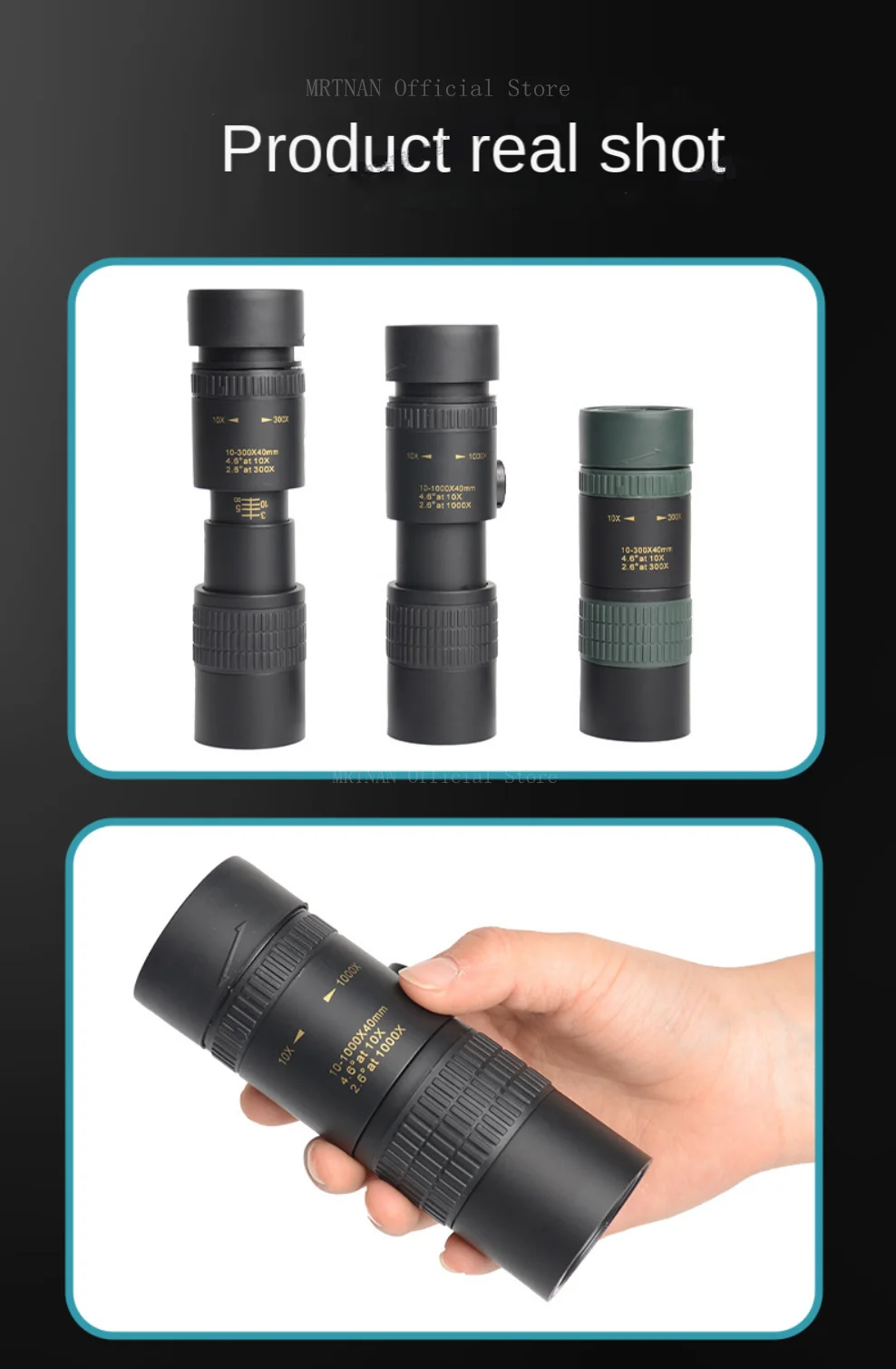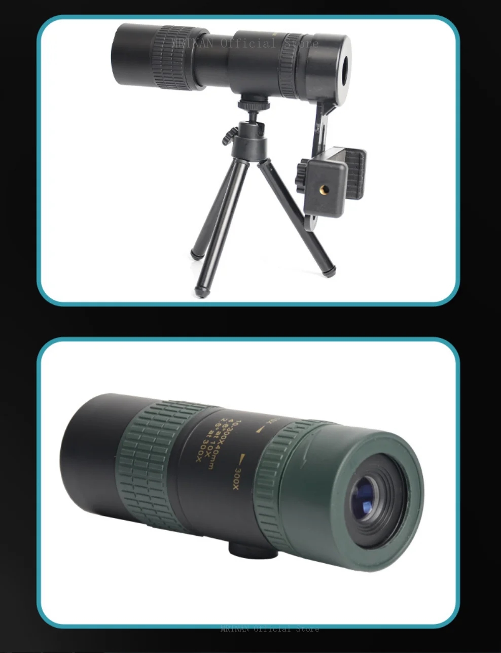 Potente telescopio monocular HD de 300X40 Zoom de largo alcance con trípode Clip de teléfono para caza al aire libre Camping turismo