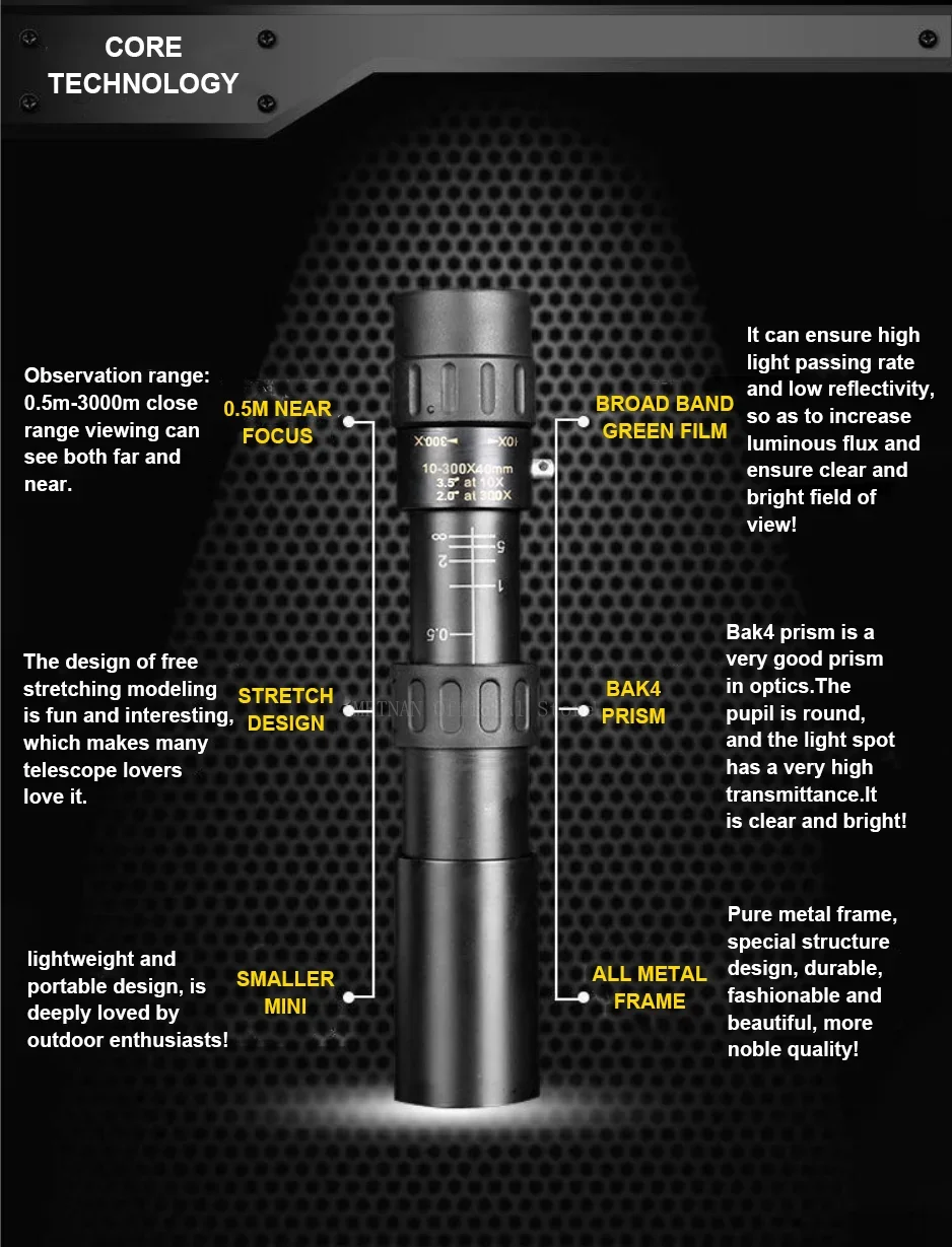 10-300X Zoom High Definition Powerful Binocular Telescope Remote Portable High Quality Professional Hunting Monocular Telescope