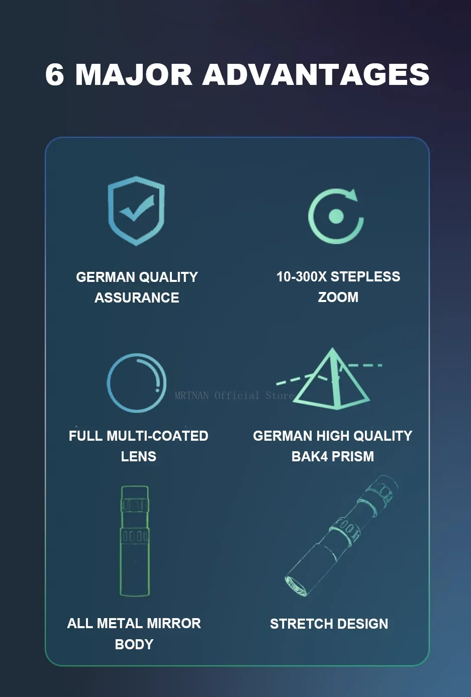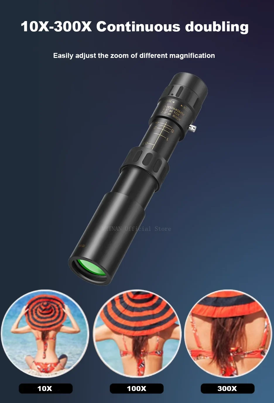 Telescopio con Zoom 10-300x40, binoculares portátiles HD fuertes, monocular profesional de largo alcance, visión nocturna baja para caza