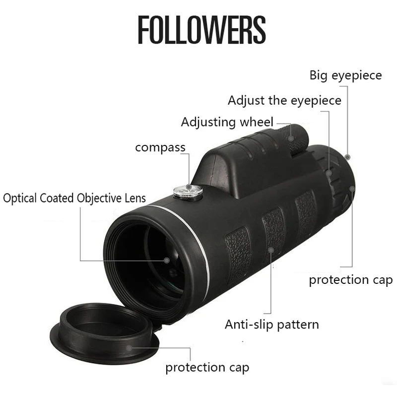 Telescopio Monocular con Zoom de 40x60, alta calidad, resistente al agua, con trípode adjunto y soporte para teléfono inteligente para acampar al aire libre y cazar