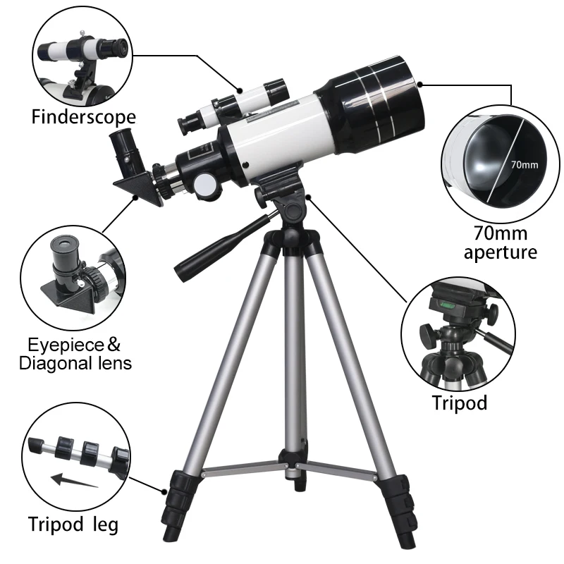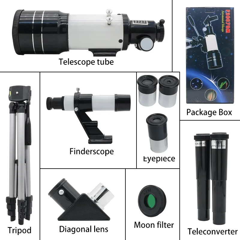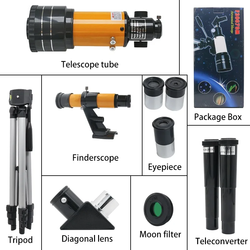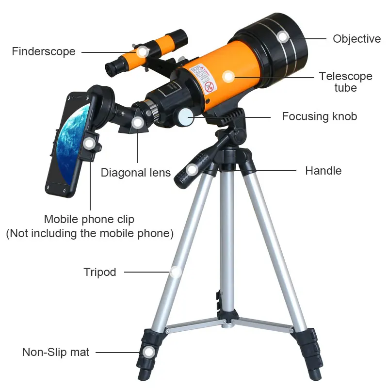 1. Telescopio astronómico para principiantes: este telescopio es ligero y duradero, junto con los oculares puede ayudarle a localizar y ver objetos más rápido. Haz que sea fácil y divertido explorar las estrellas y constelaciones en el cielo nocturno o los animales salvajes durante el día.