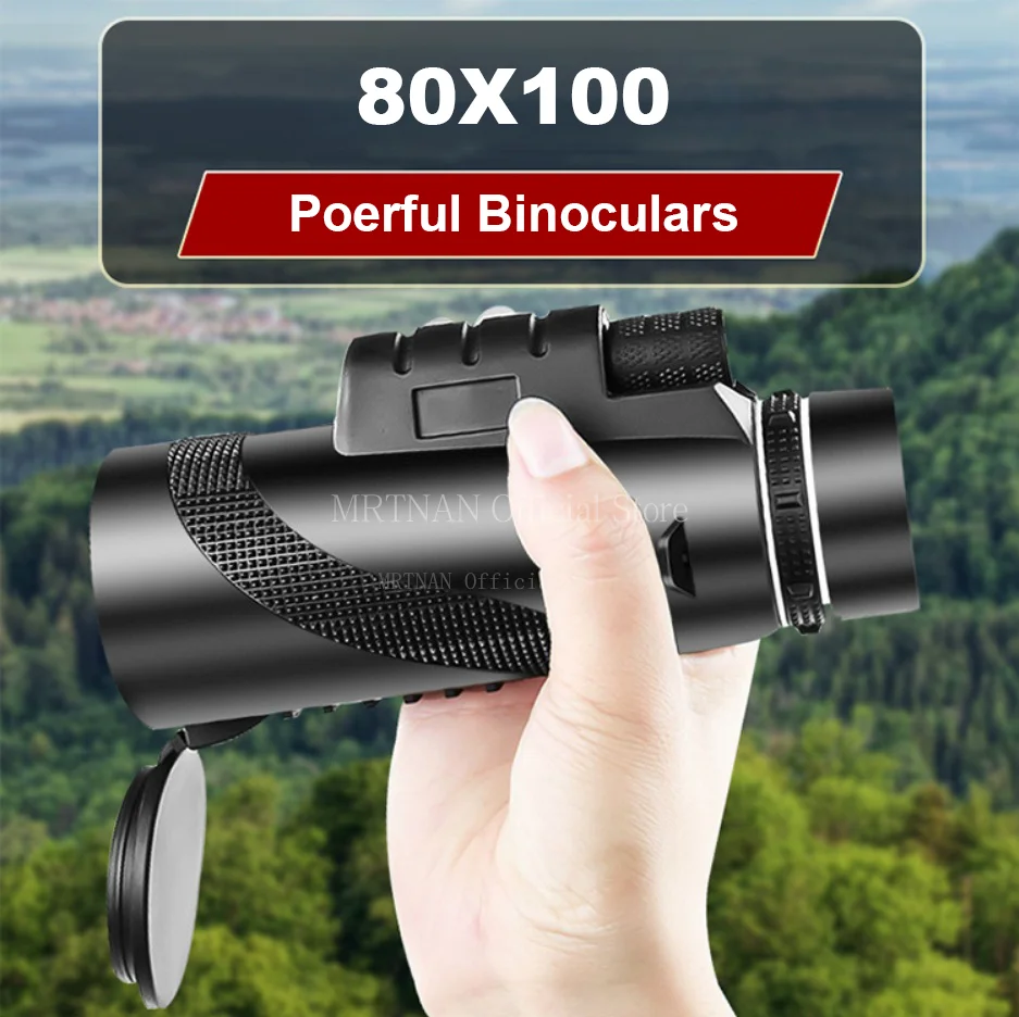 Telescopio Monocular potente 80x100 Binoculares portátiles Telescopio de largo alcance caza Camping con trípode Clip para teléfono