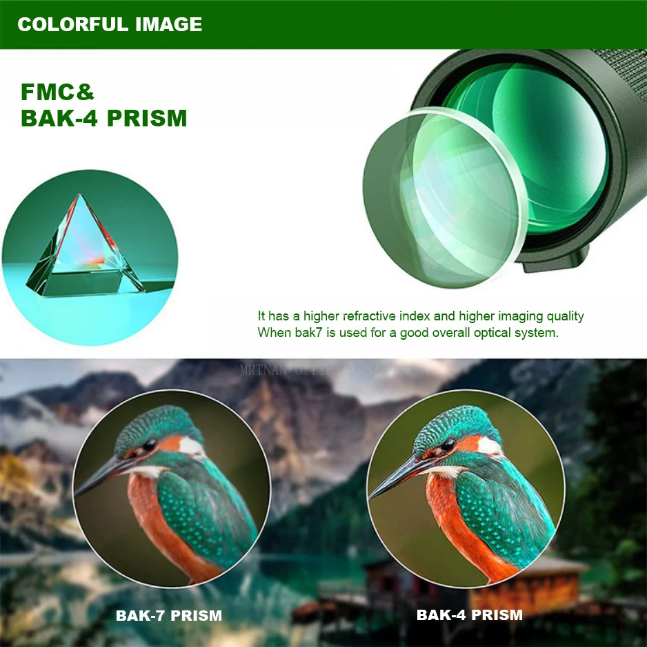 • Prisma BAK4: Equipado con un prisma BAK4, este telescopio ofrece imágenes brillantes y de alto contraste, mejorando su visibilidad incluso en condiciones de poca luz.