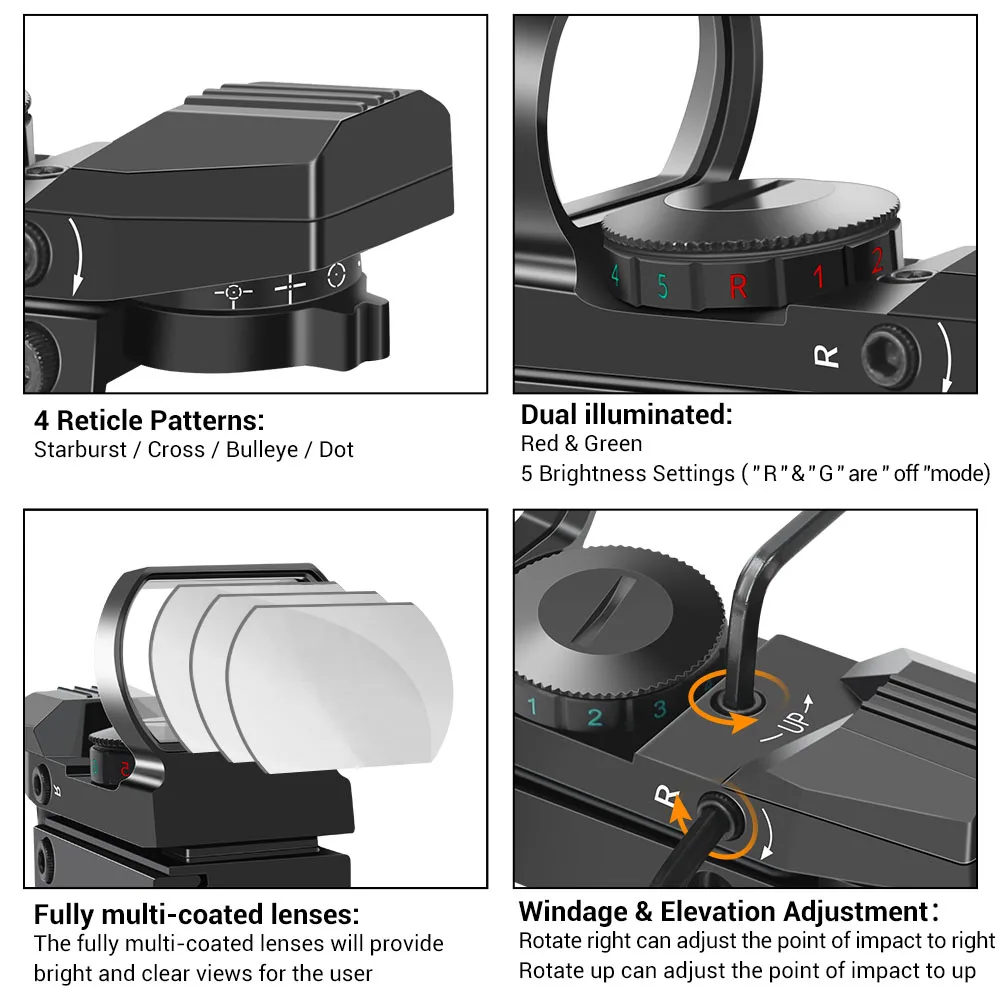 1 x Caza táctica holográfica Reflex Green Dot Sight Scope 20mm