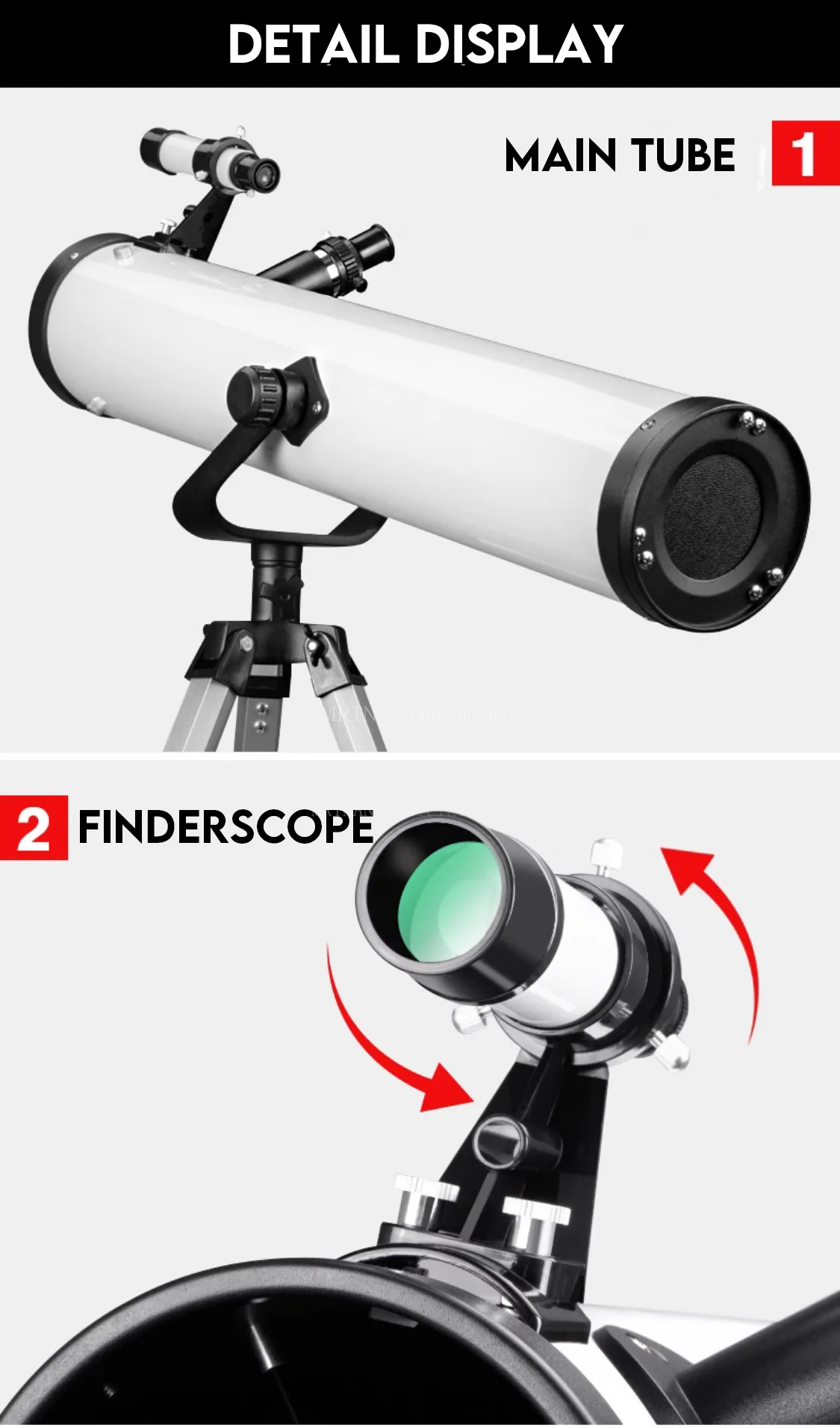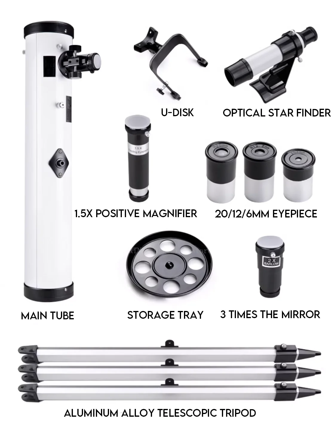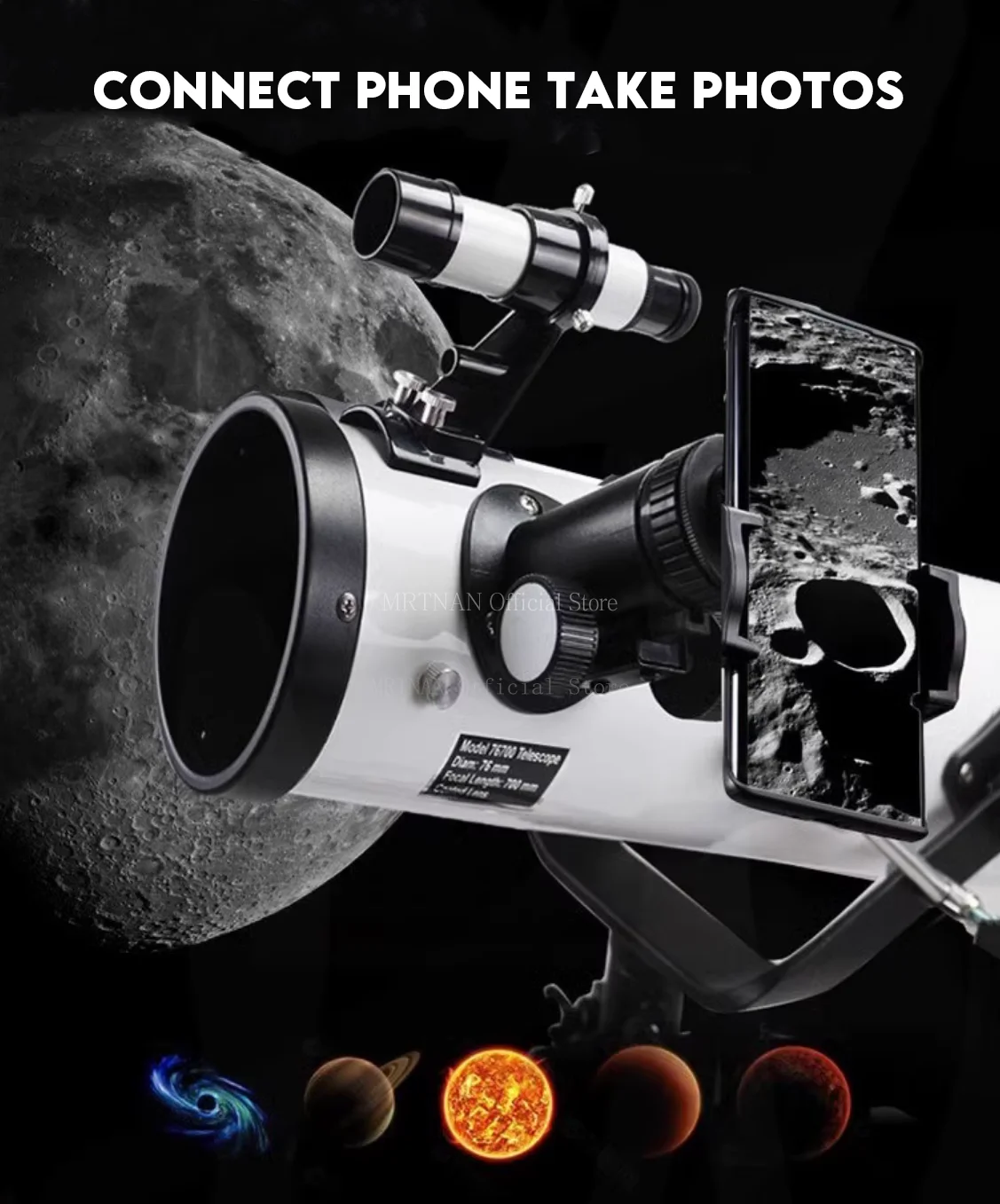 1. Soporte para teléfono móvil: conecte su teléfono móvil para tomar fotografías y compartir el cielo estrellado con amigos.