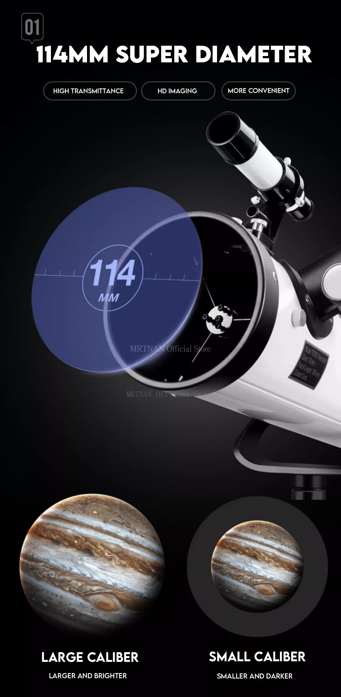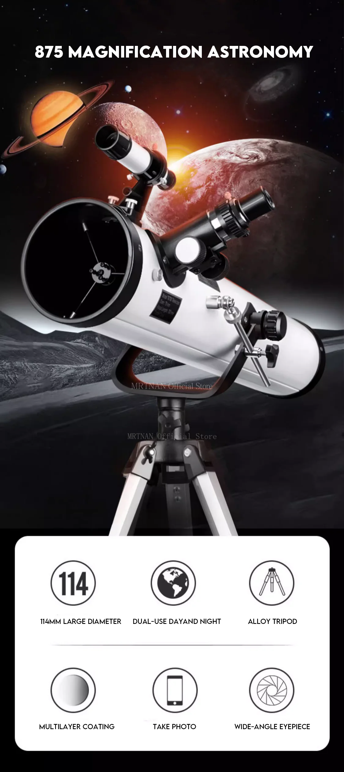 Telescopio con Zoom 875 veces, altavoz mejorado de calibre grande de 114mm, telescopio astronómico con vista de espacio profundo, monocular de estrella y luna