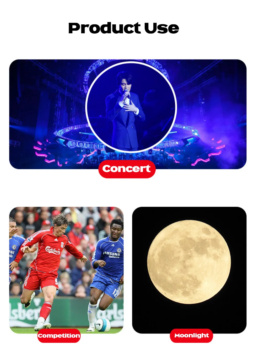 Lentes de teleobjetivo + caja + clip de teléfono + máscara de ojos + bolsa de gafas + toallitas para gafas