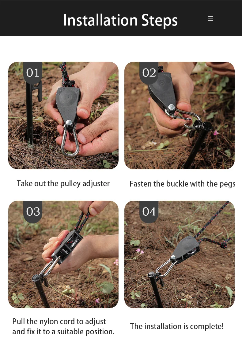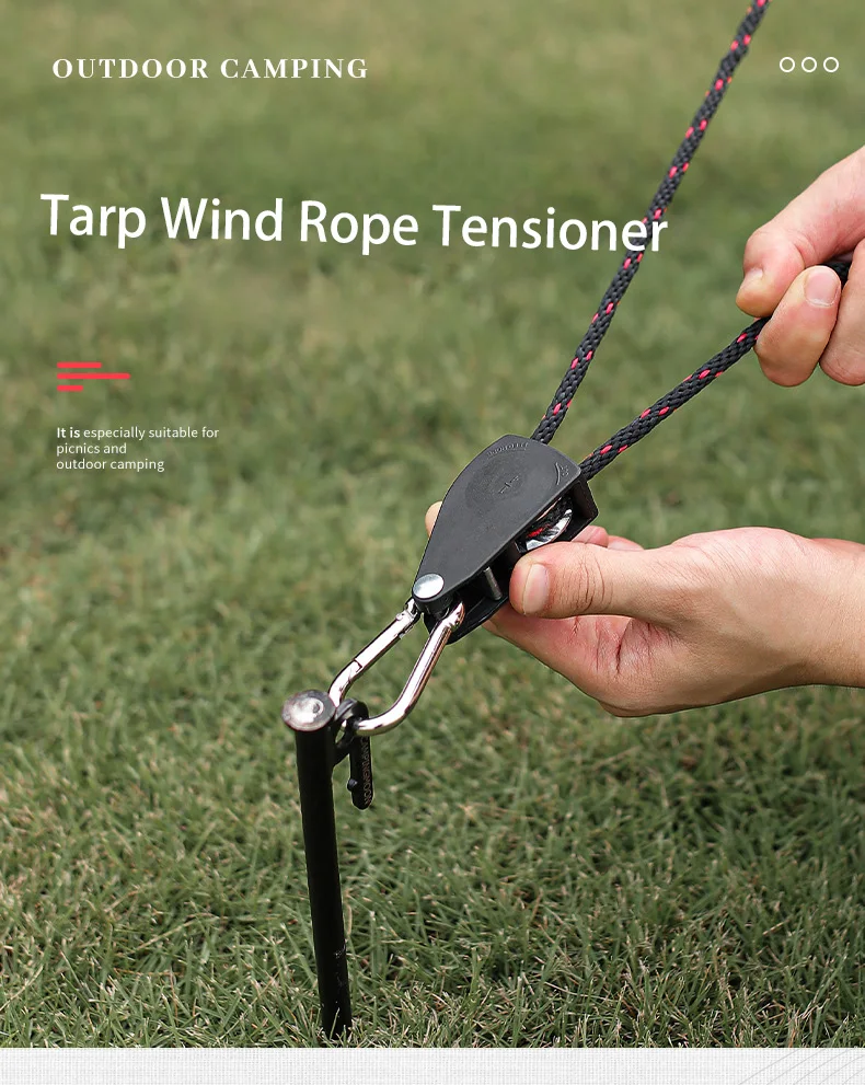 Tensor de cuerda de viento para tienda de piezas, polea ajustable con mosquetón, cierre de cuerda de nailon para acampada, senderismo y exteriores, 6 unidades