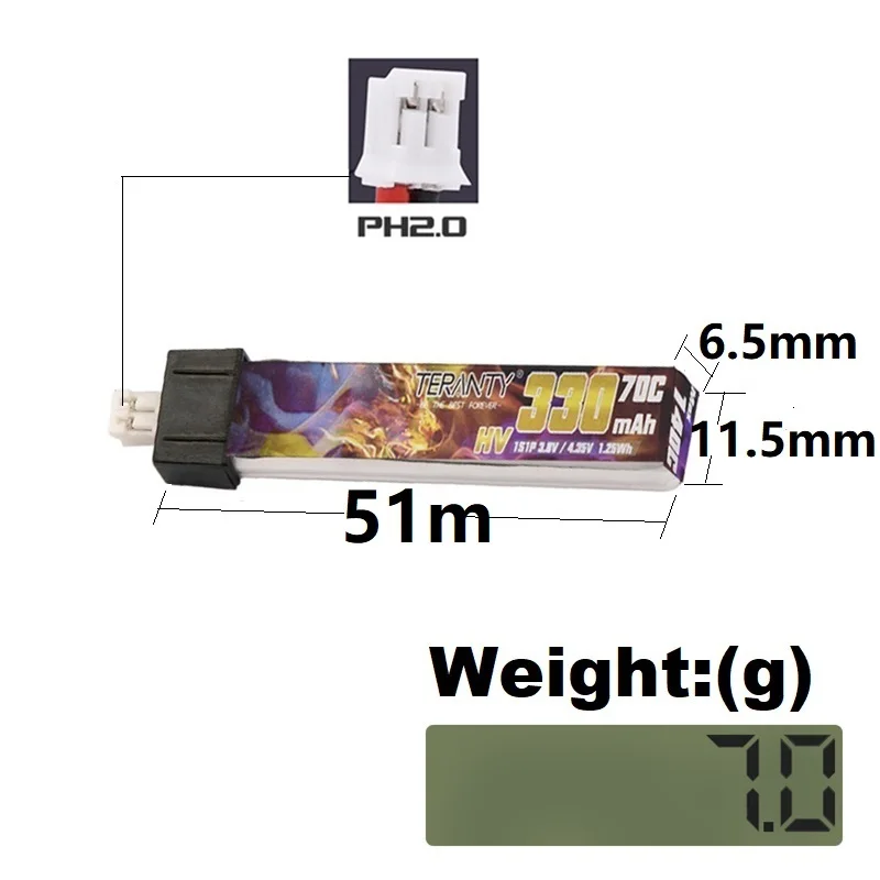 TERANTY MAX-batería Lipo 1S 3,8 V 330mAh 70C PH2.0 para Dron US65 UK65 Inductrix Beta65S URUAV UR65 Mobula 7 Tiny Whoop