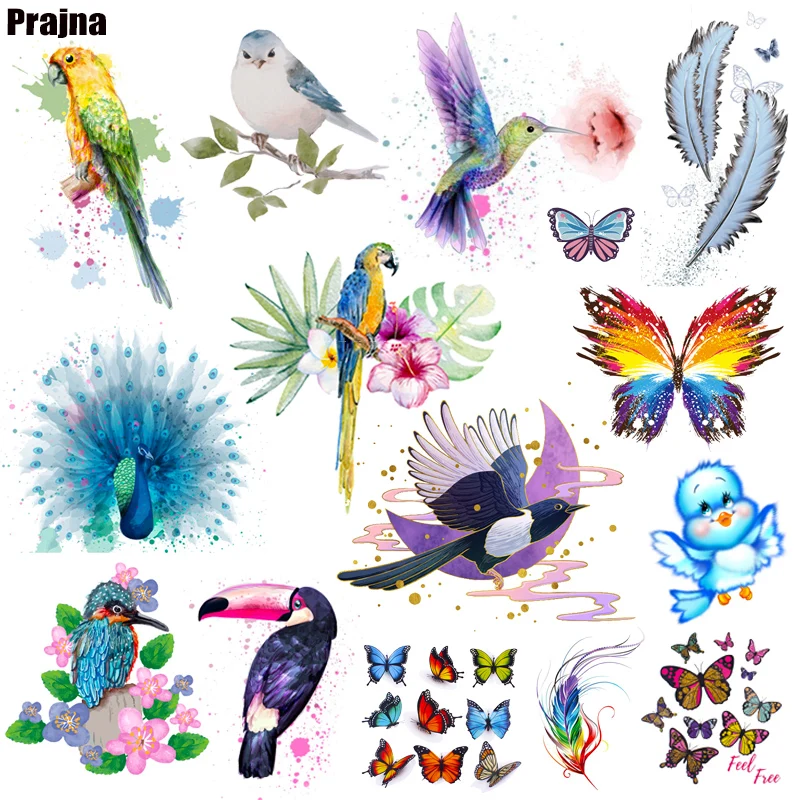 Termoadhesivo de transferencia de calor con forma de pájaro y mariposa para ropa, apliques de camiseta, parches de transferencia de hierro con animales de dibujos animados para ropa DIY