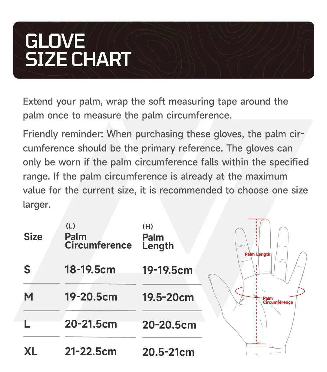 Consejos: La compra de este guante debe tomar la circunferencia de la palma como factor de referencia principal, solo de acuerdo con el rango de circunferencia de la palma, puede usar el guante, si la circunferencia de la palma ya está en el número máximo actual de yardas, se recomienda que ir a una talla más grande para comprar.