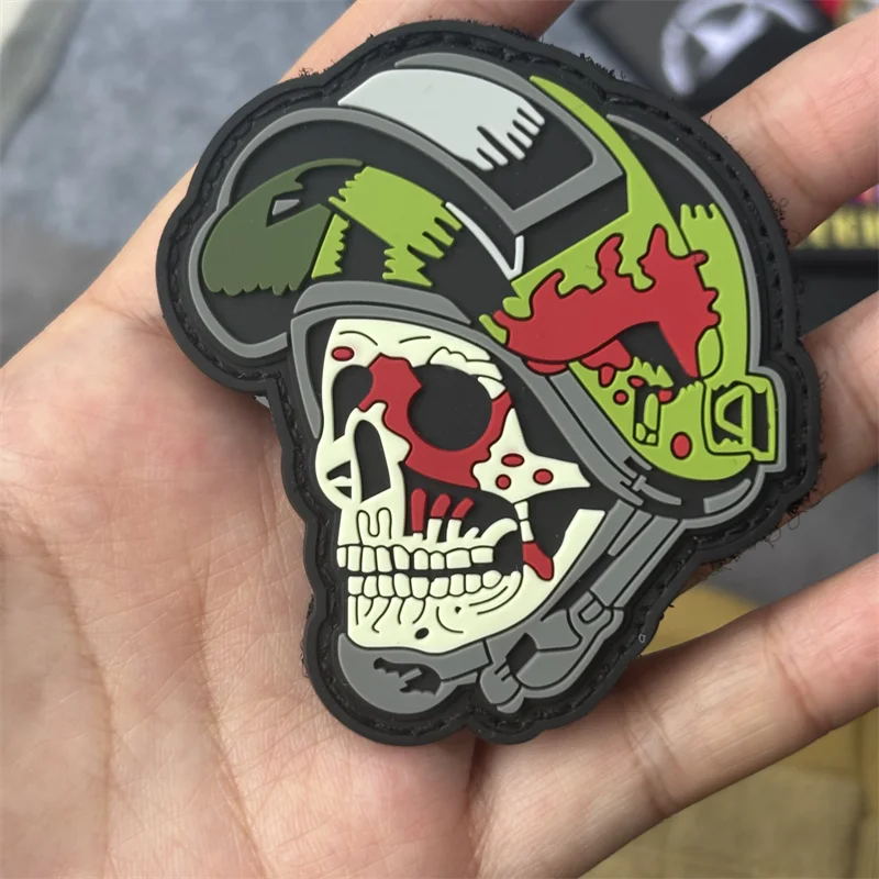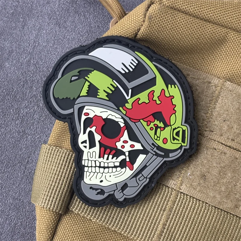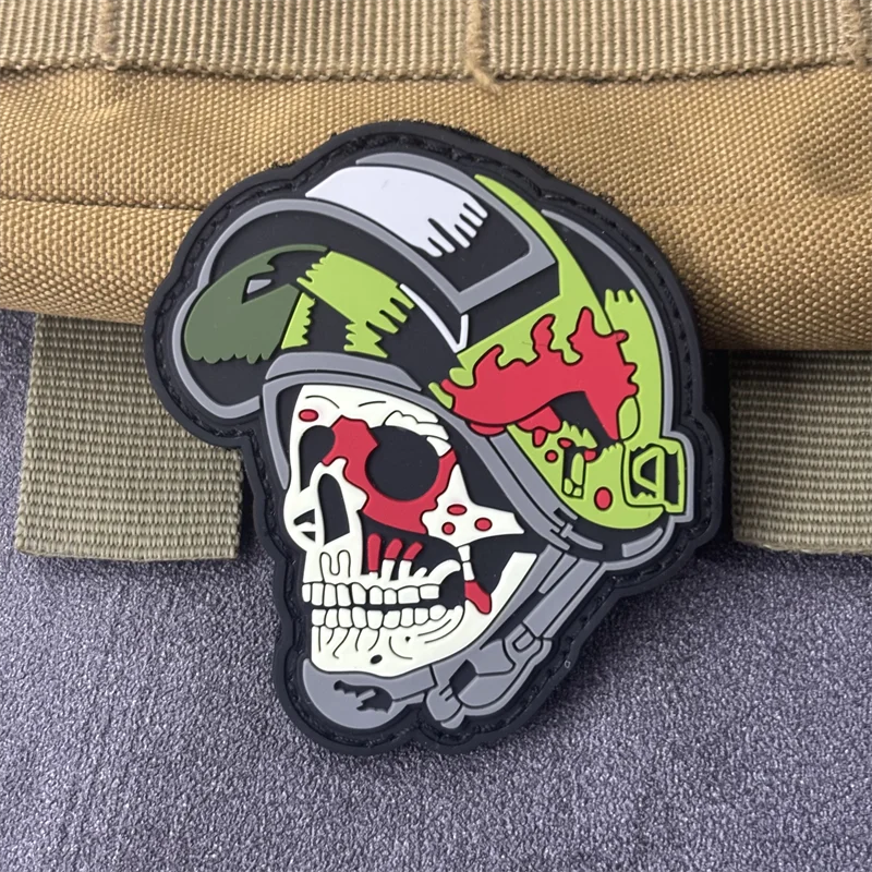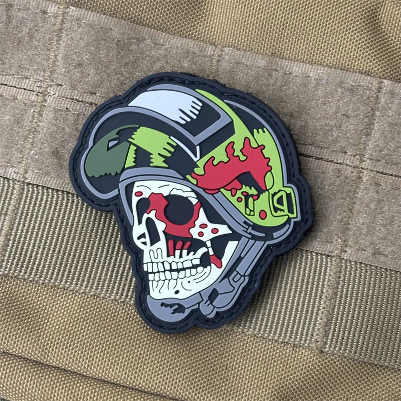 "The Skull with A Helmet on" 3D PVC Patch on Clothes Tactical Morale Badge Hook Loop Military Patches Backpack Stickers Armband