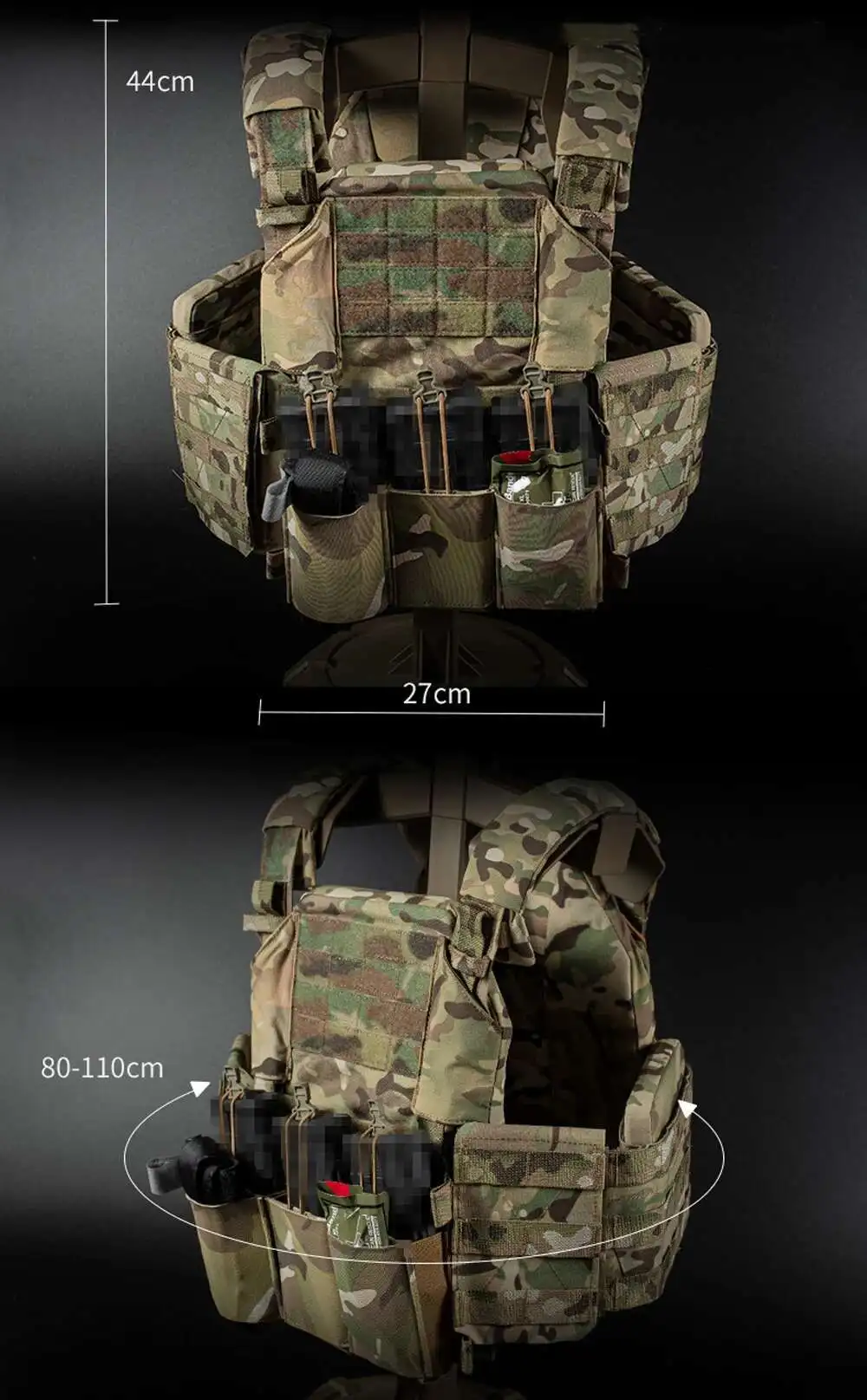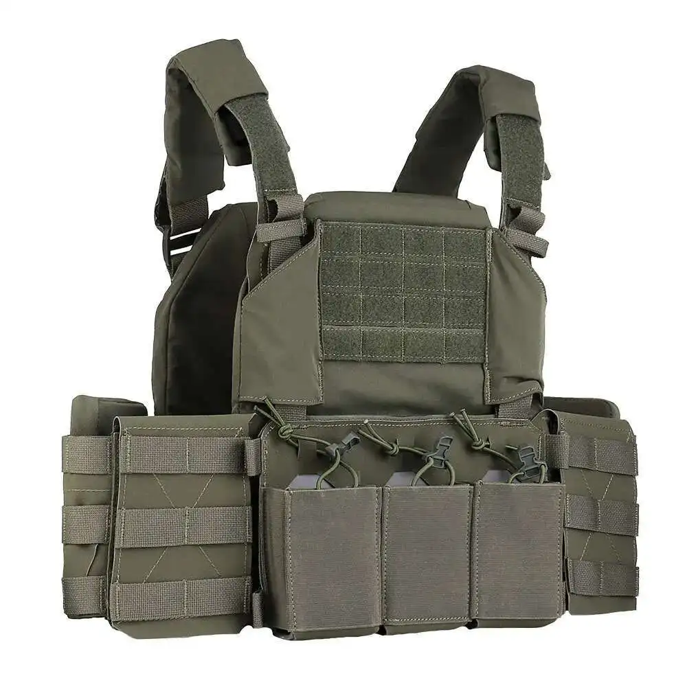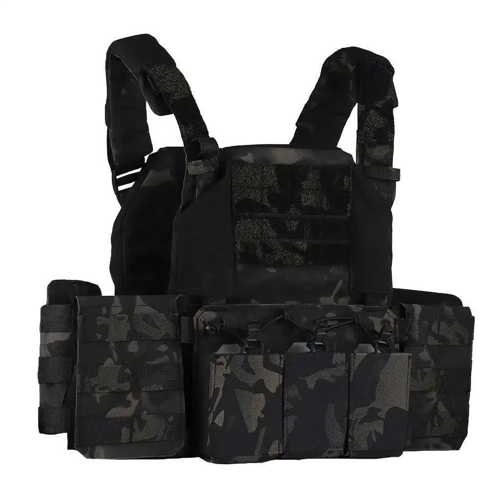 TACTIFANS Thorax Portador de placa táctica Triple bolsa para revistas Card Donning Doffing Cummerbund PALS Webbing Chaleco de caza rápida
