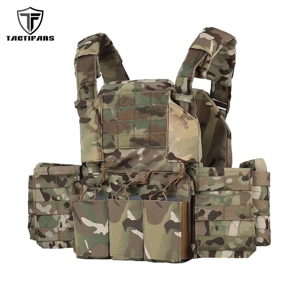 TACTIFANS Thorax Portador de placa táctica Triple bolsa para revistas Card Donning Doffing Cummerbund PALS Webbing Chaleco de caza rápida