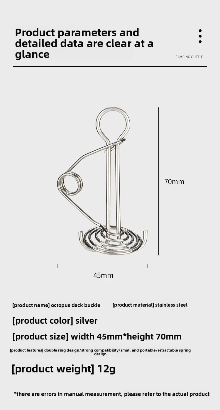 Tienda de campaña, clavos para cubierta de uñas, hebilla de resorte de torsión de pulpo, hebilla de cuerda de vino, hueso de pescado, accesorios para tienda de campaña de escalada y senderismo
