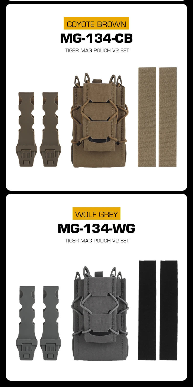 MOLLE Mount Mag Pack Set Tiger 7.62/5.56/9MM Mag Pouch V2 Set para portaplacas y cinturón
