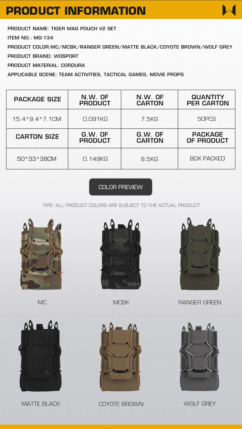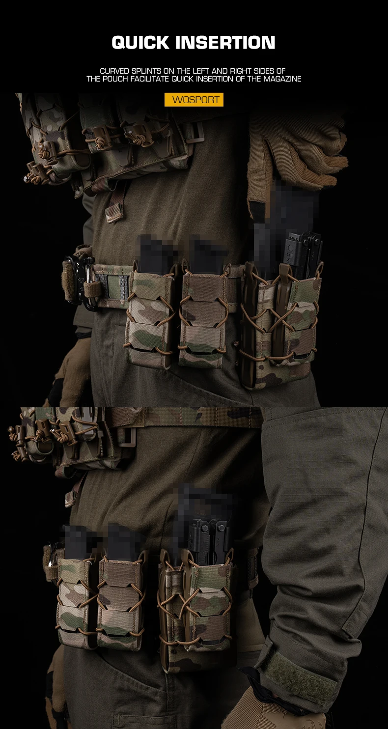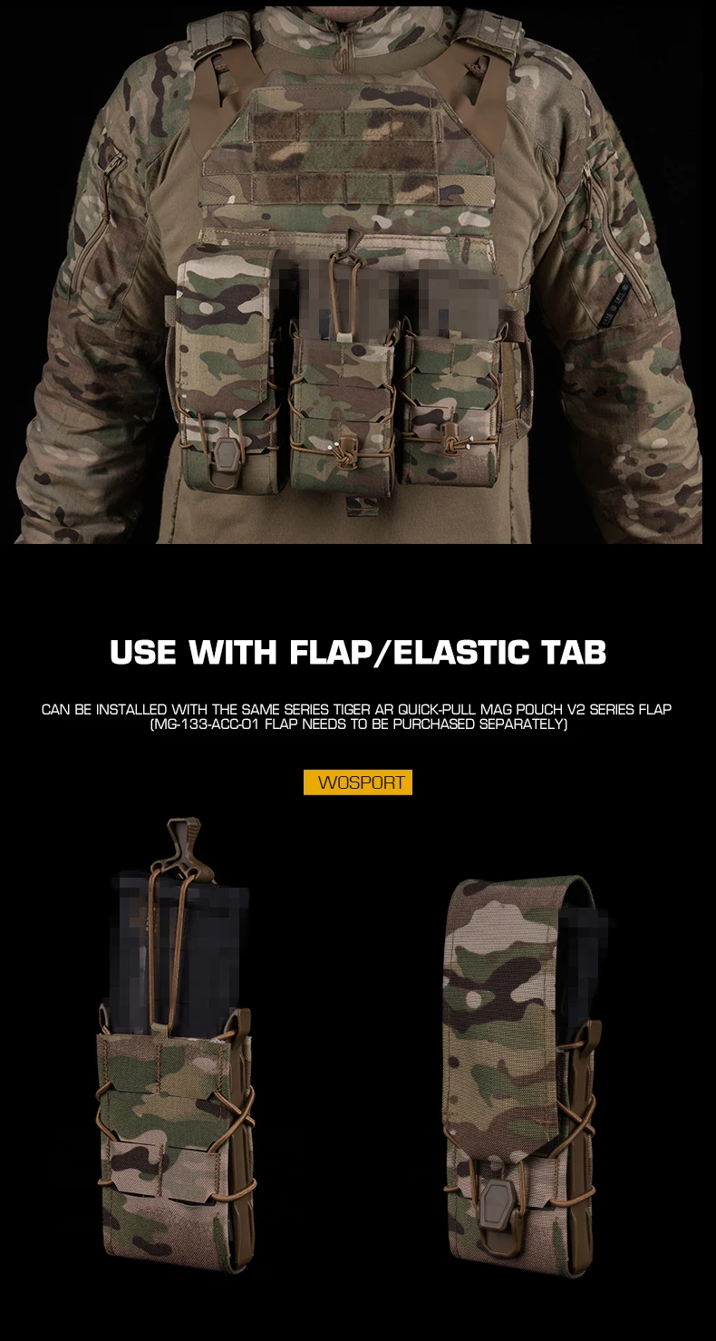 MOLLE Mount Mag Pack Set Tiger 7.62/5.56/9MM Mag Pouch V2 Set para portaplacas y cinturón