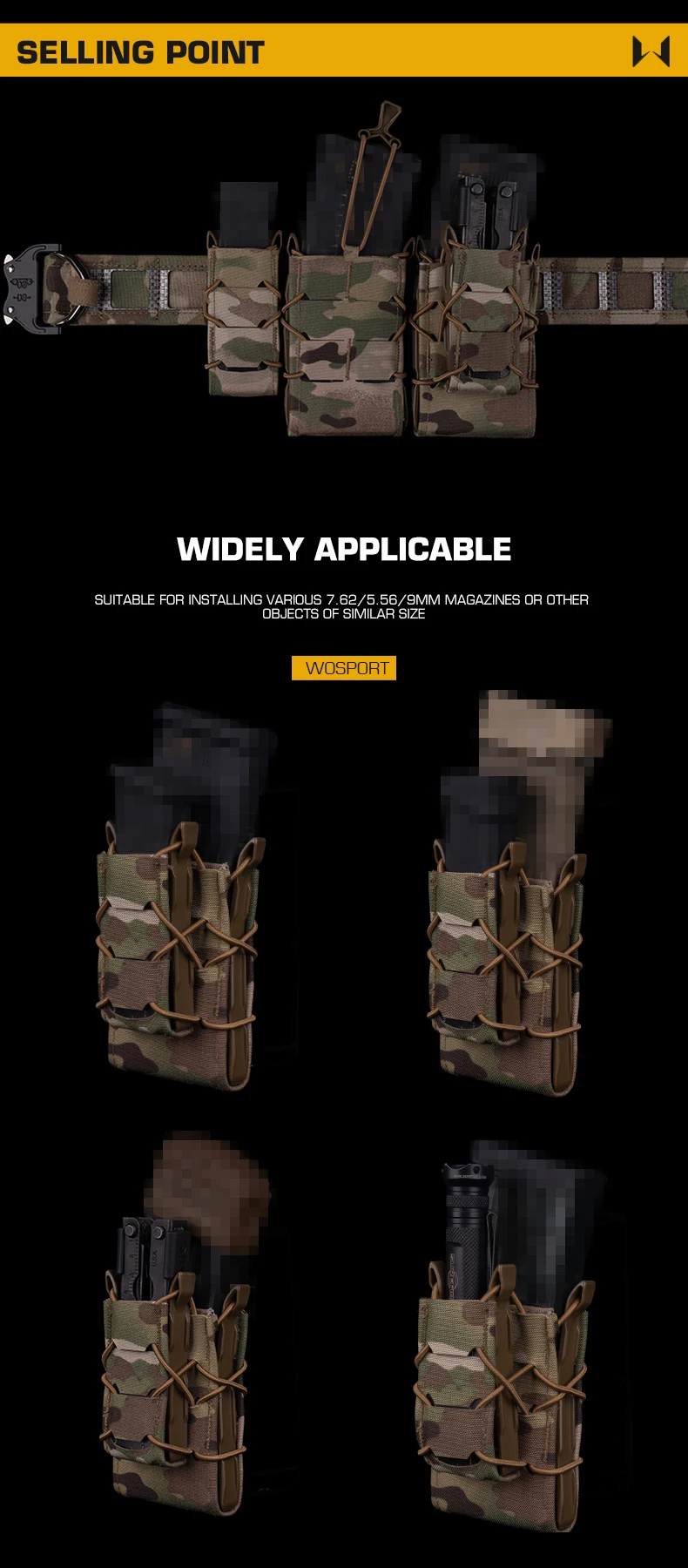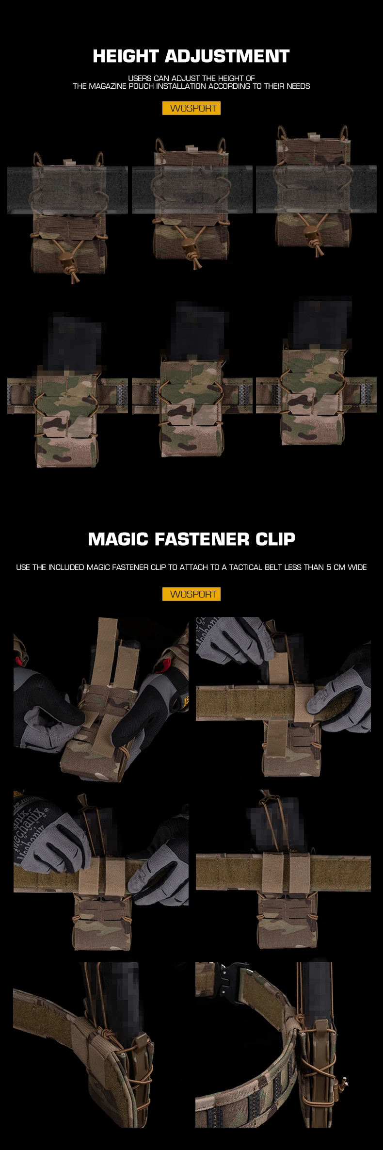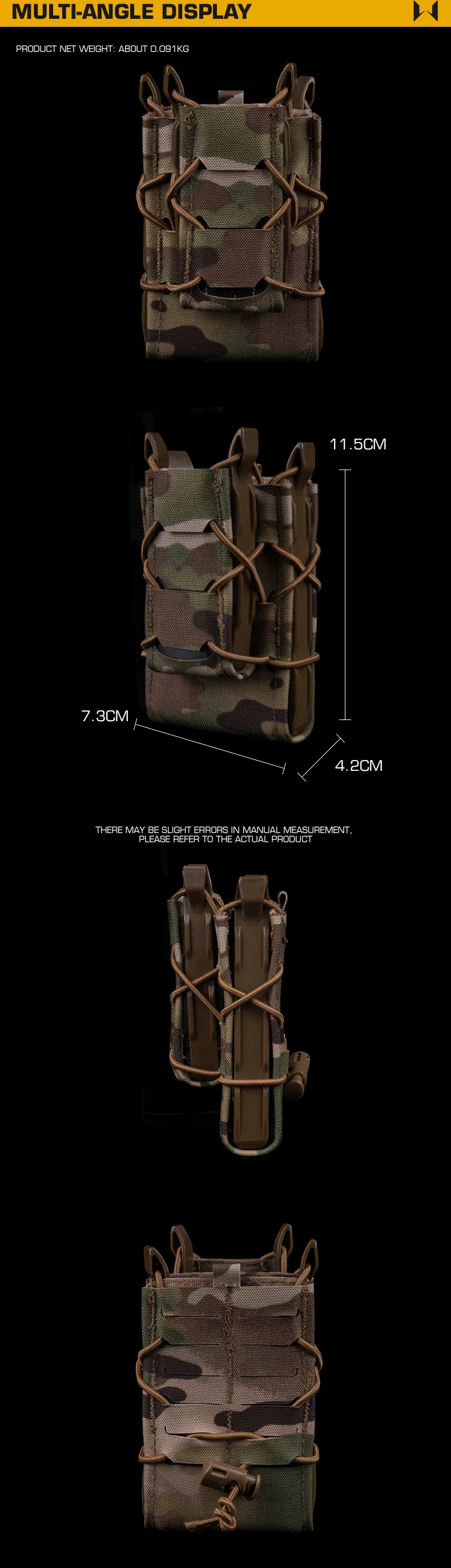 MOLLE Mount Mag Pack Set Tiger 7.62/5.56/9MM Mag Pouch V2 Set para portaplacas y cinturón