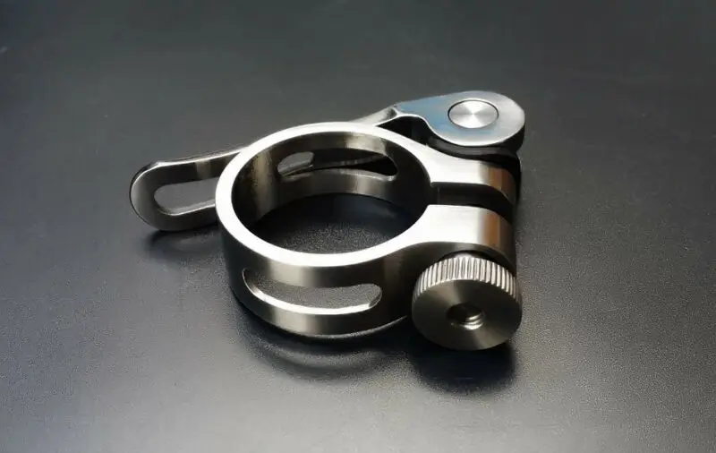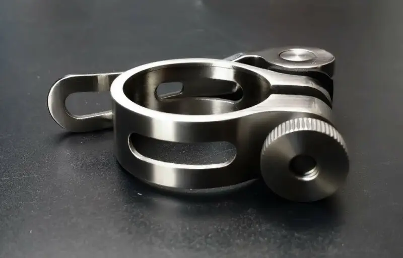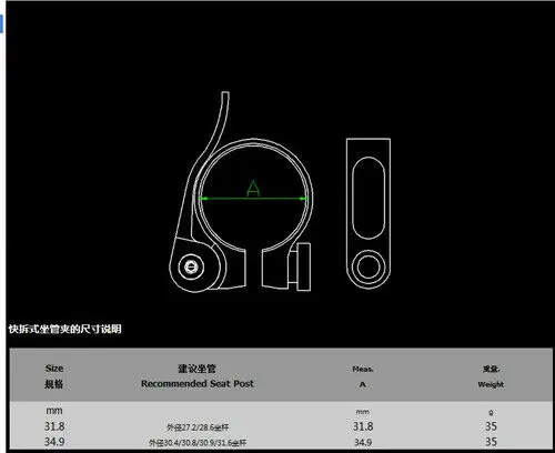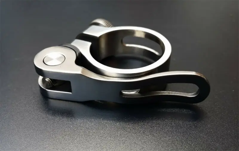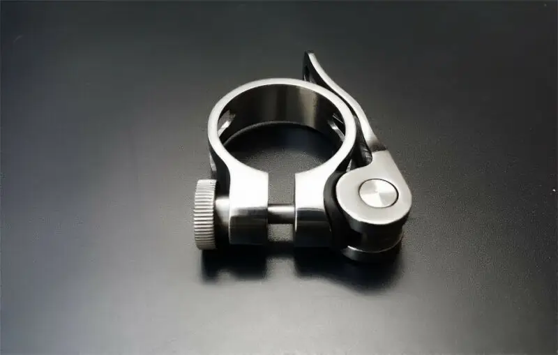 Material: aleación de titanio 6AL/4V Grado 5Producción CNC, duro y fuerte. Nunca se oxida.Tamaño: ID31.8mm/34,9mmEl paquete incluye:1 abrazadera de poste de asiento de bicicleta de 1/2 "*