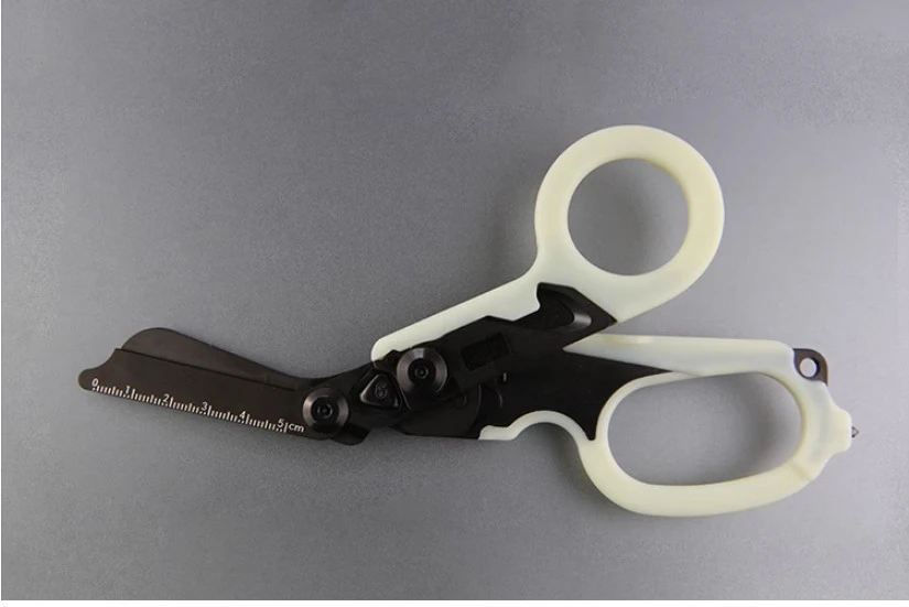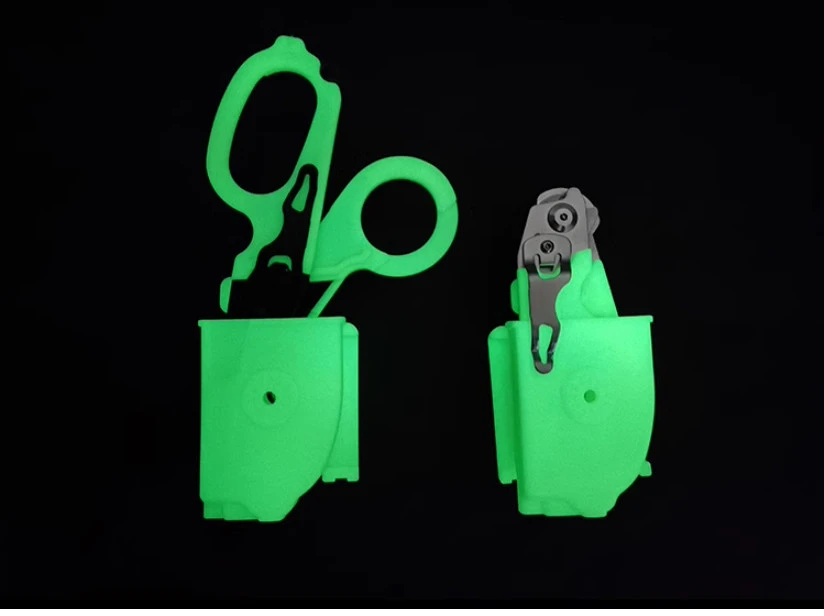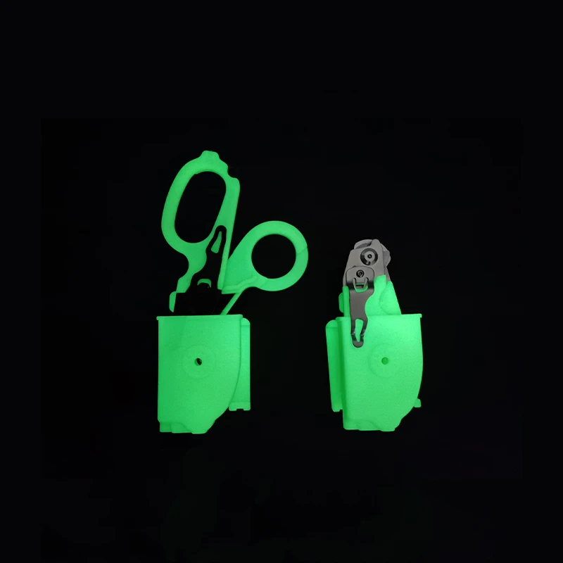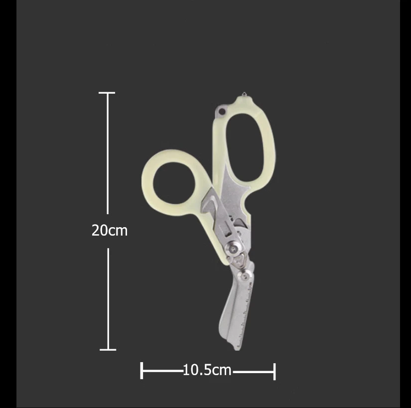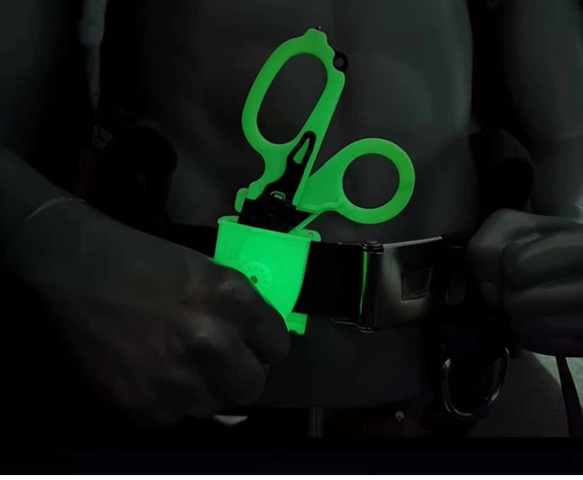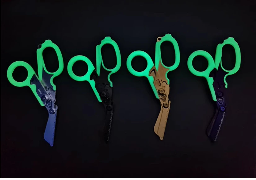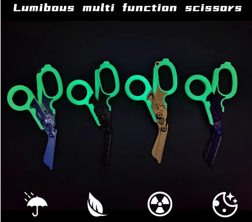 Tijeras de acero inoxidable multifunción que brillan en la oscuridad con funda luminosa EDC herramienta táctica plegable hebilla de bolsa médica
