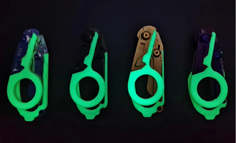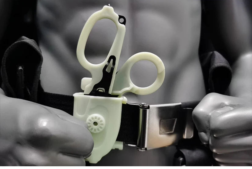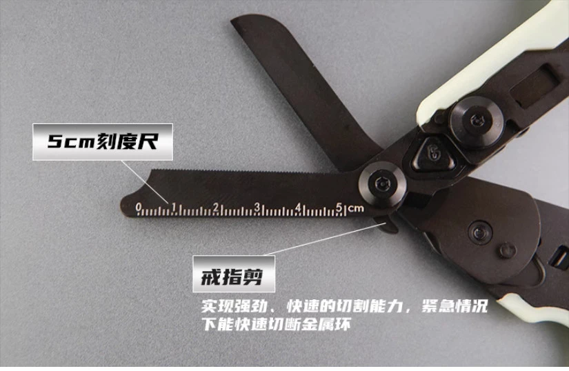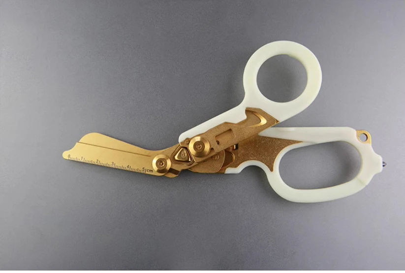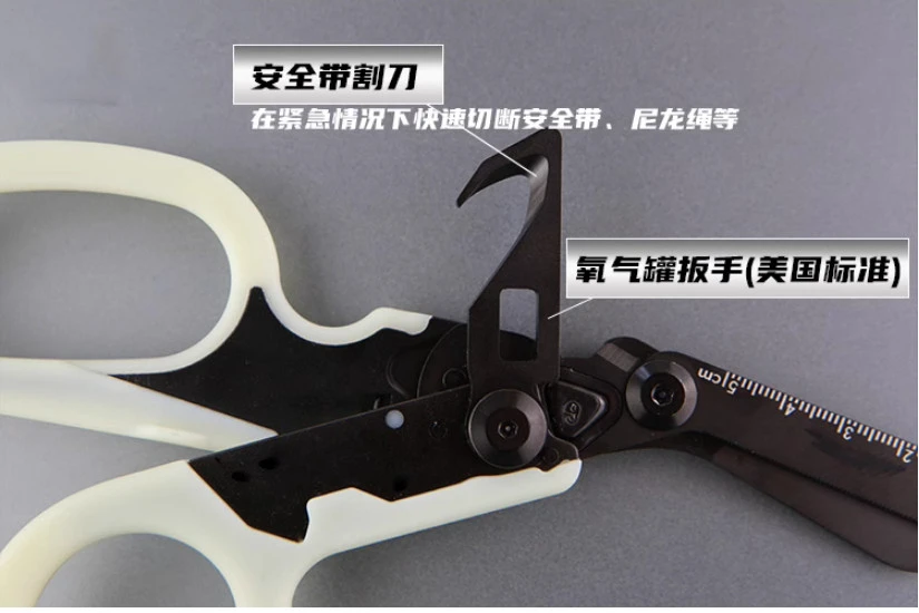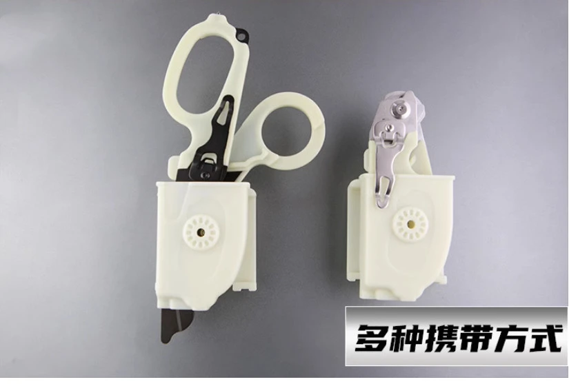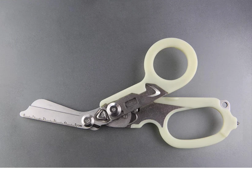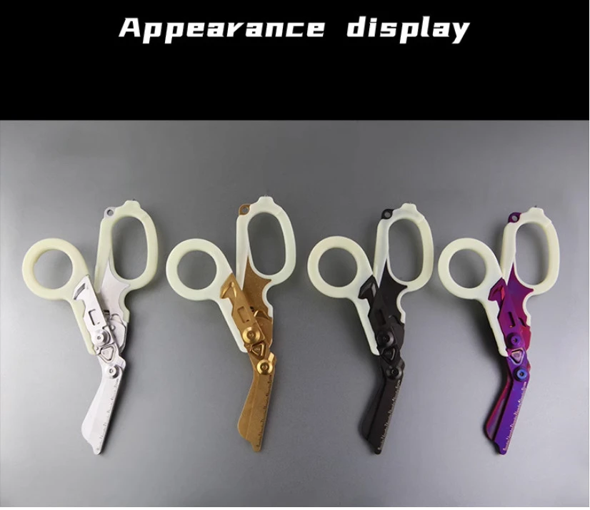 Tijeras de acero inoxidable multifunción que brillan en la oscuridad con funda luminosa EDC herramienta táctica plegable hebilla de bolsa médica
