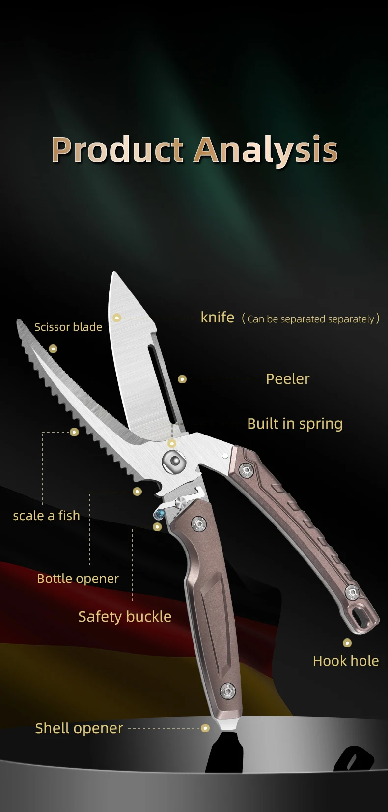 Tijeras de hueso de pollo de cocina casera, acero inoxidable, multiuso, corte afilado, tijeras de rebote multifuncionales, Sub