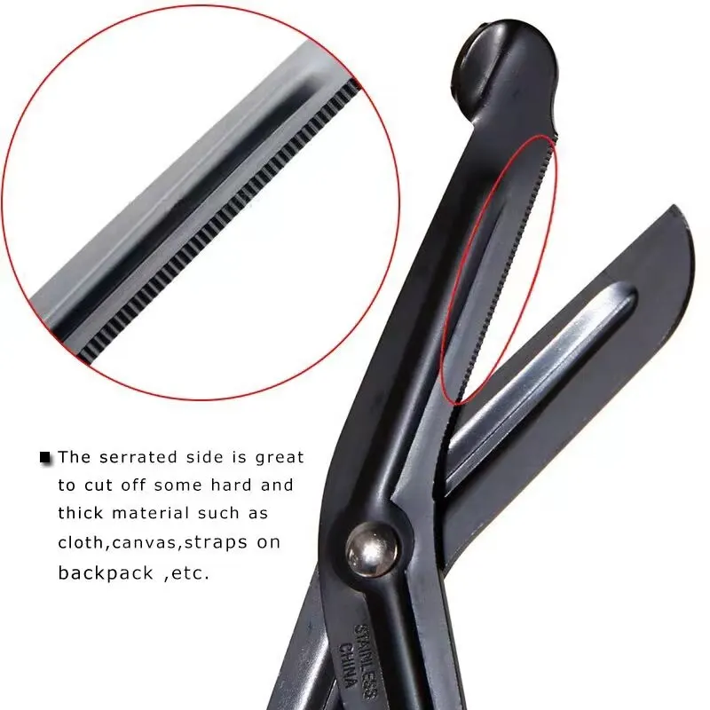 Se utiliza para cortar la ropa o la tela que está en contacto cercano con la persona lesionada, sin tener que girar el torso para quitarse la ropa