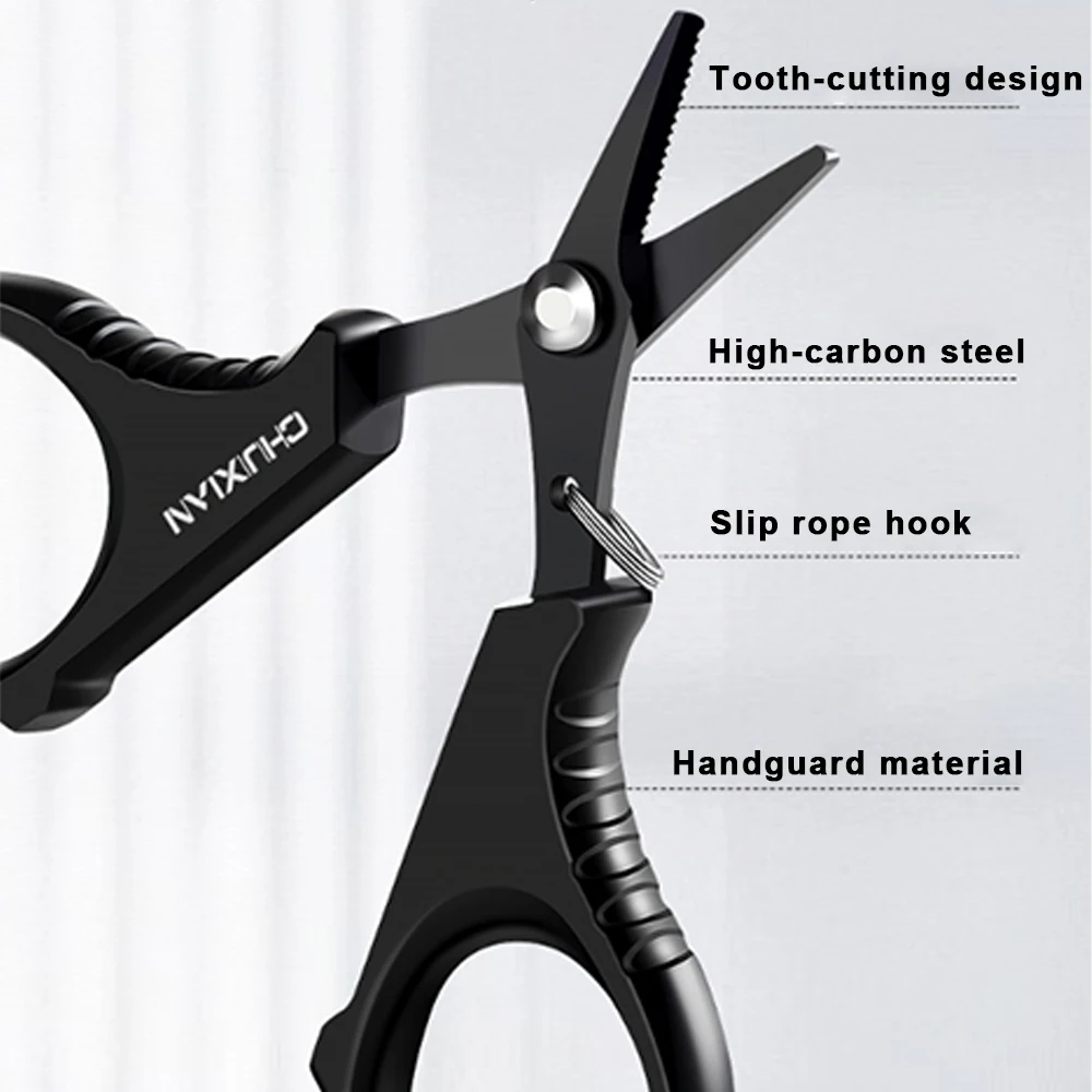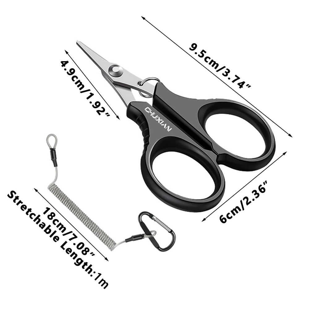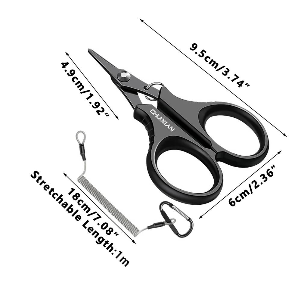 2.El diseño del cordón permite a los usuarios colgar las tijeras en sus muñecas o aparejos de pesca para acceder fácilmente y aumentar la eficiencia de la pesca.
