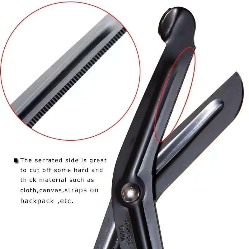 Se utiliza para cortar la ropa o la tela que esté en estrecho contacto con la persona lesionada, sin tener que girar el torso para quitar la ropa.