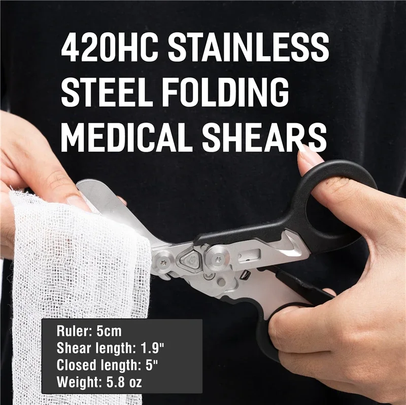 El producto es excelente. Es más grande de lo esperado cuando se despliega, pero la longitud de la hoja de las tijeras es de aproximadamente 7 cm, lo cual es un poco corto, y el material de la hoja es muy grueso. La estrella hexagonal adjunta es una herramienta esencial que debería incluirse junto, pero es genial que hayan hecho un estuche de plástico separado con un orificio para ella. Muy recomendado.
