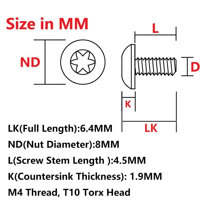 Rosca M4, botón de cabeza Torx T10