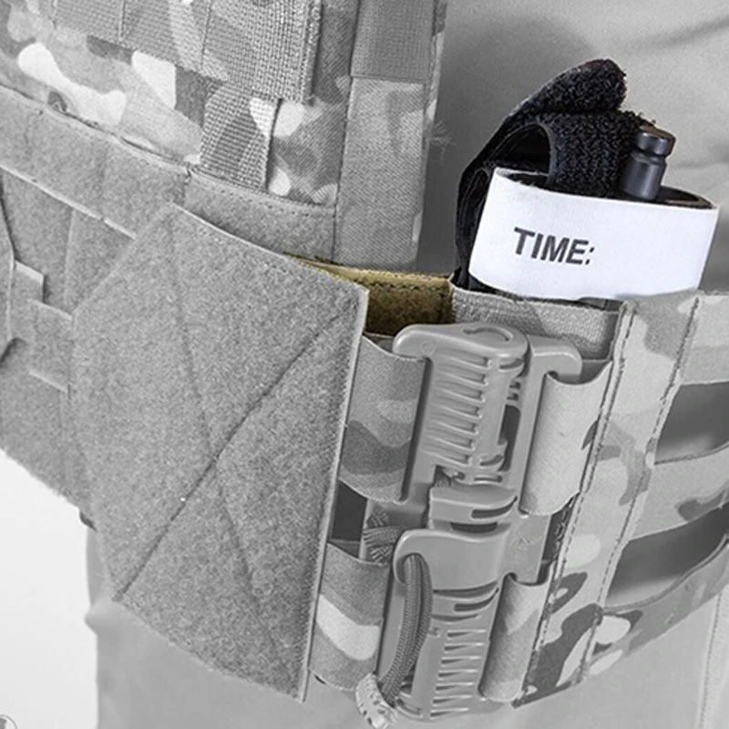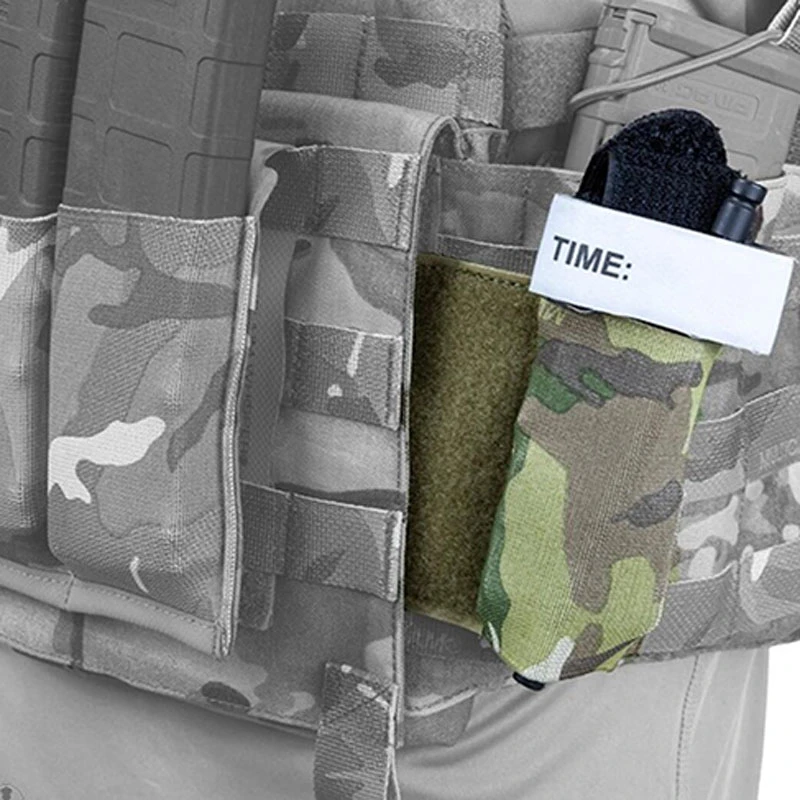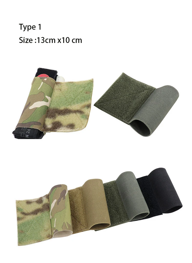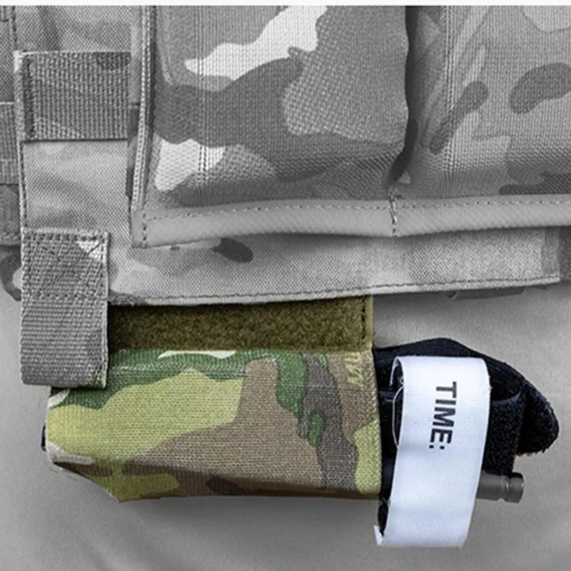 Tipo de chaleco táctico y tipo cinturón torniquete, bolsa elástica, soporte de placa para aparejo de pecho, soporte de almacenamiento seguro con gancho y bucle de 2''*3''