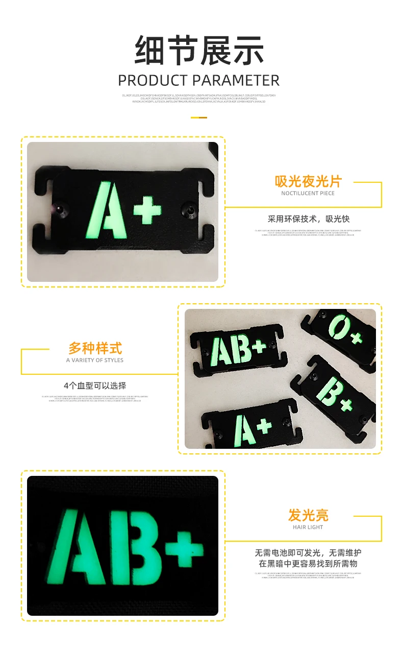 Tira de identificación luminosa tipo sangre, accesorios tácticos de plástico montados en Molle, mochila, función luminosa universal
