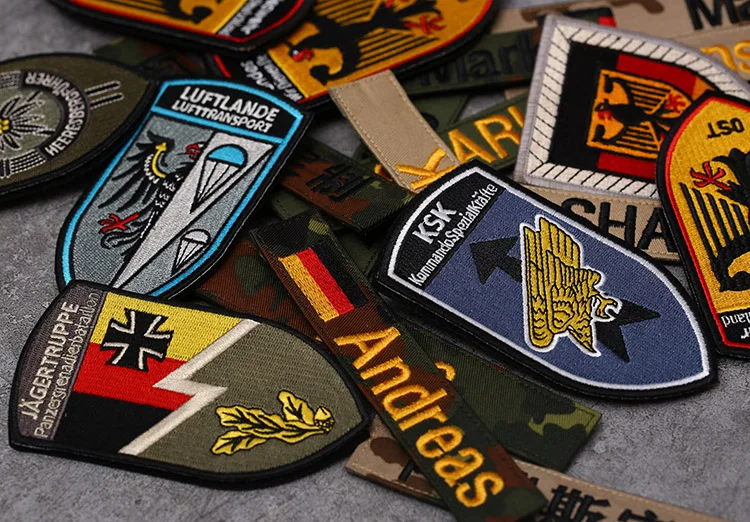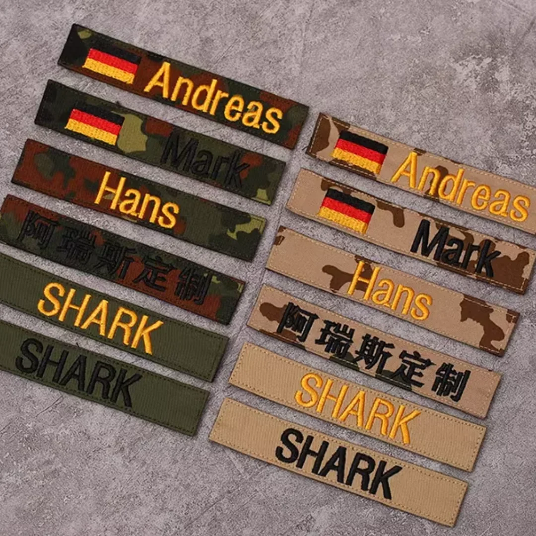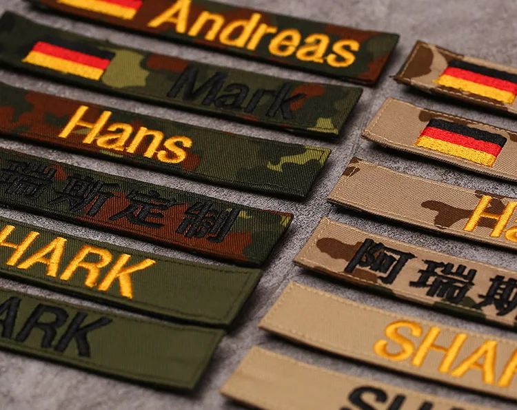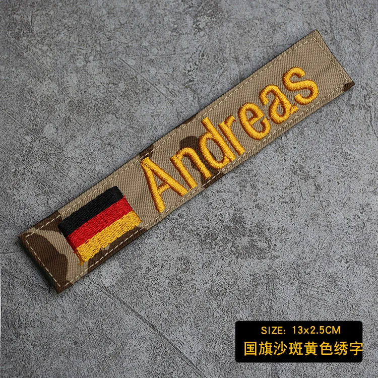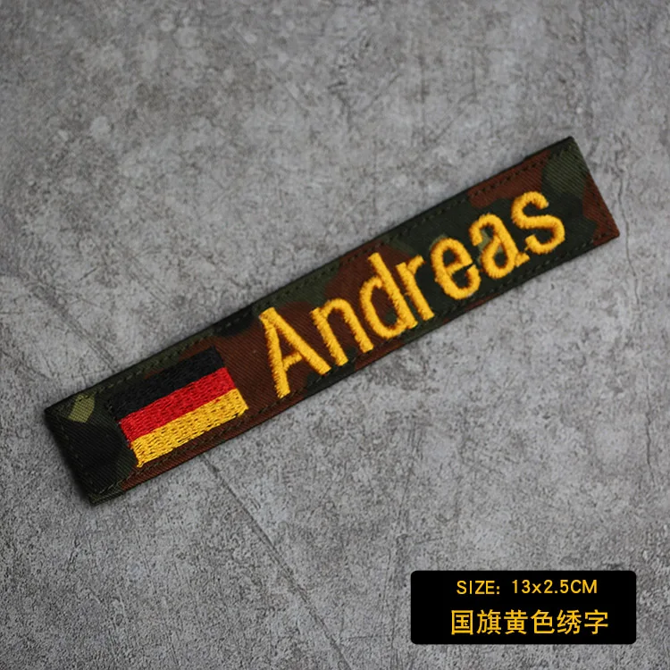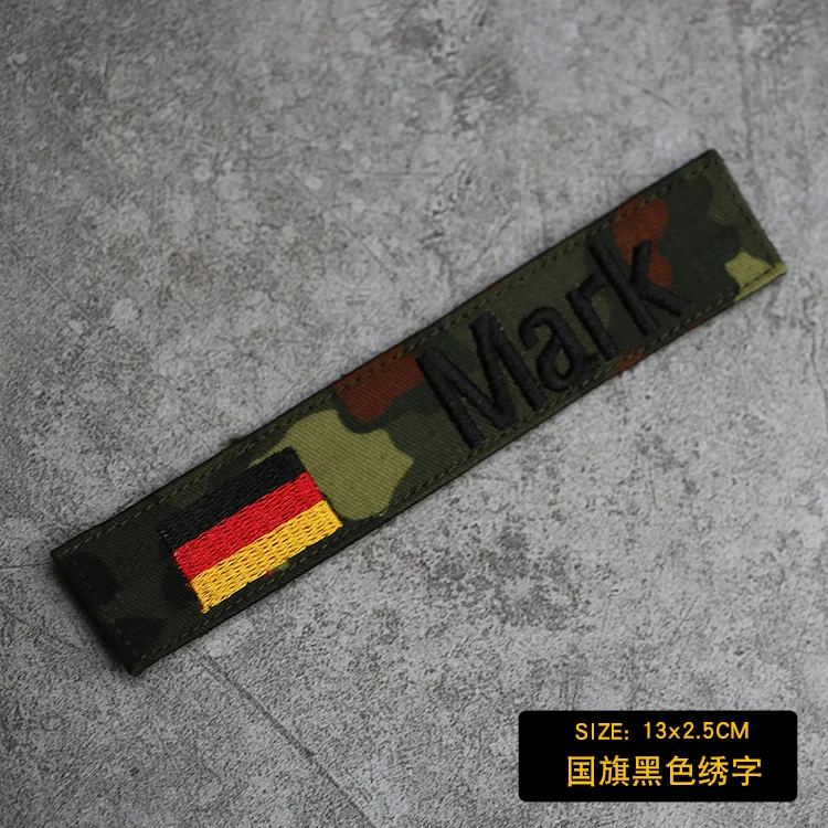 Tira de nombre de camuflaje moteado de la selva alemana, brazalete bordado táctico, insignia, tira de pecho personalizada