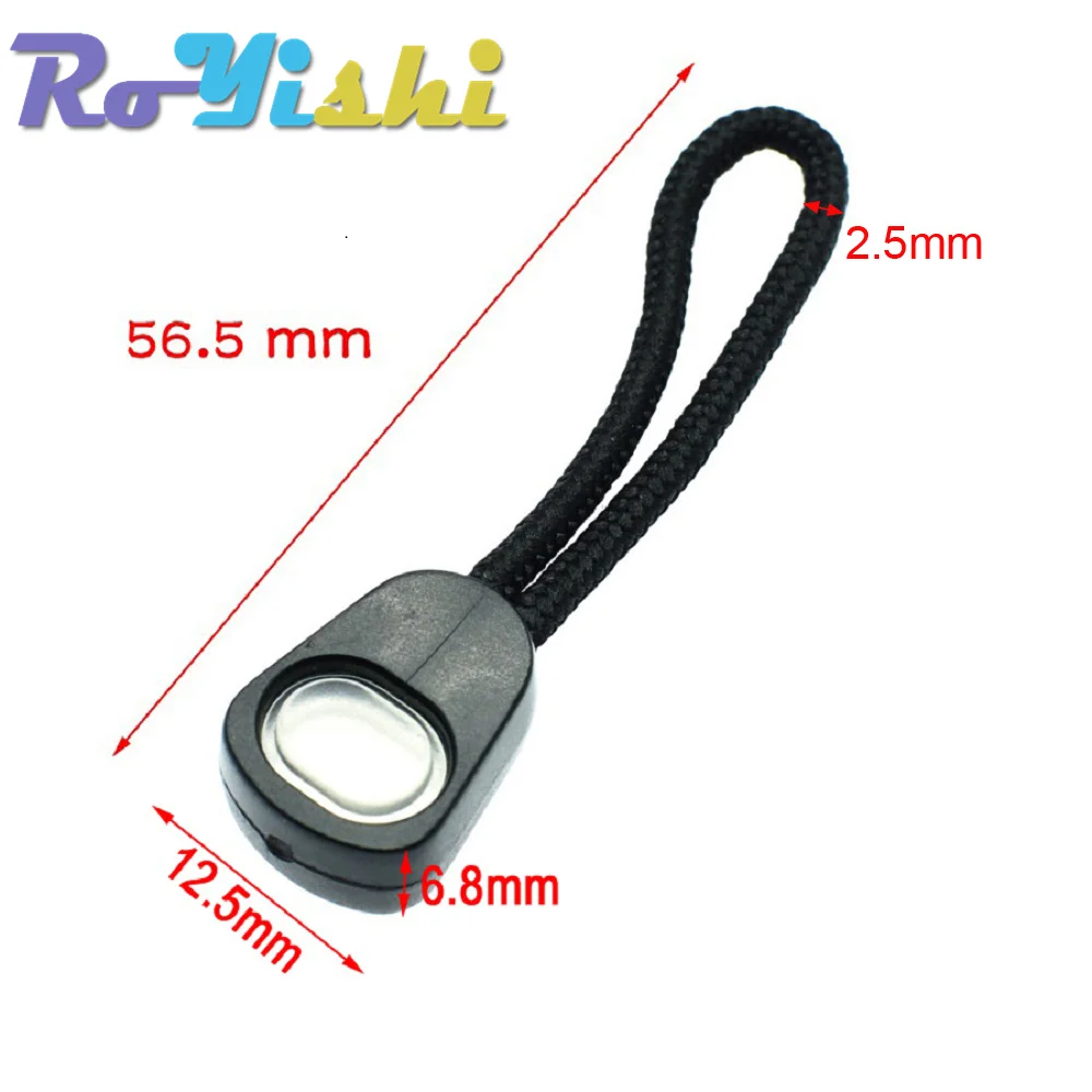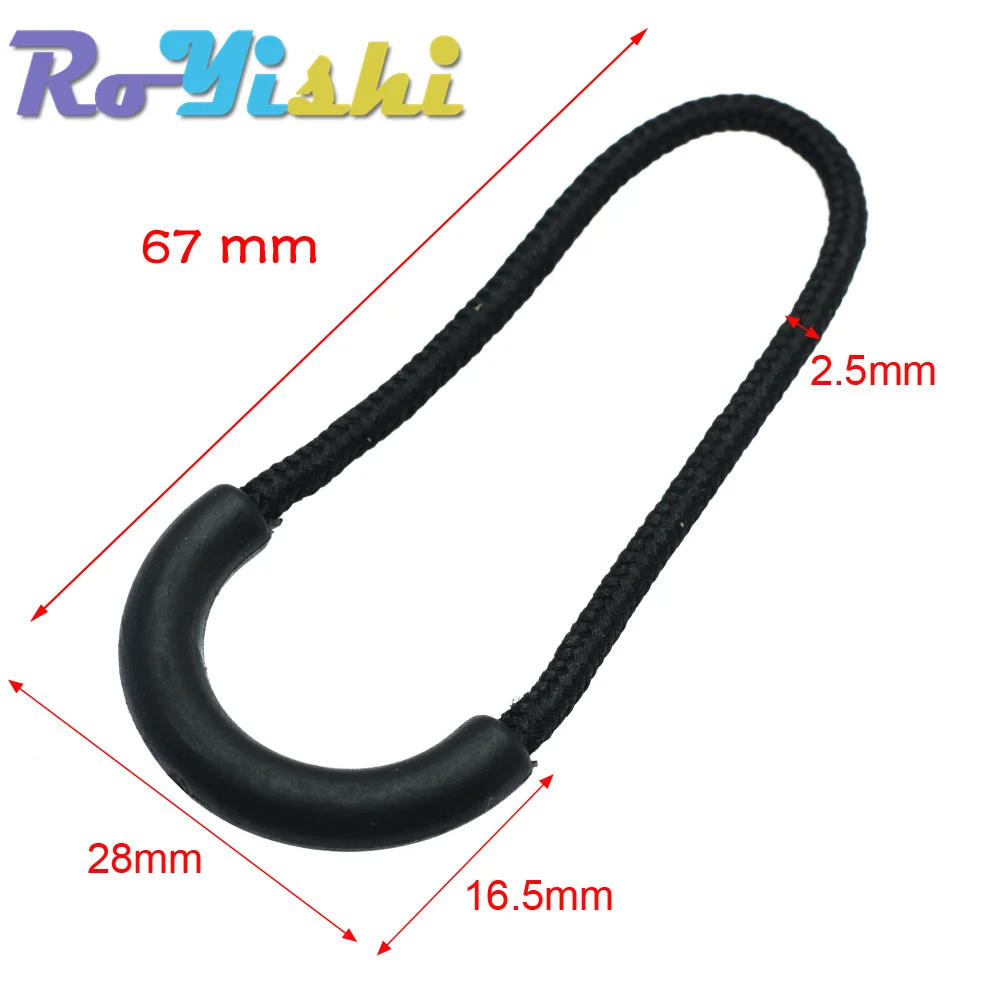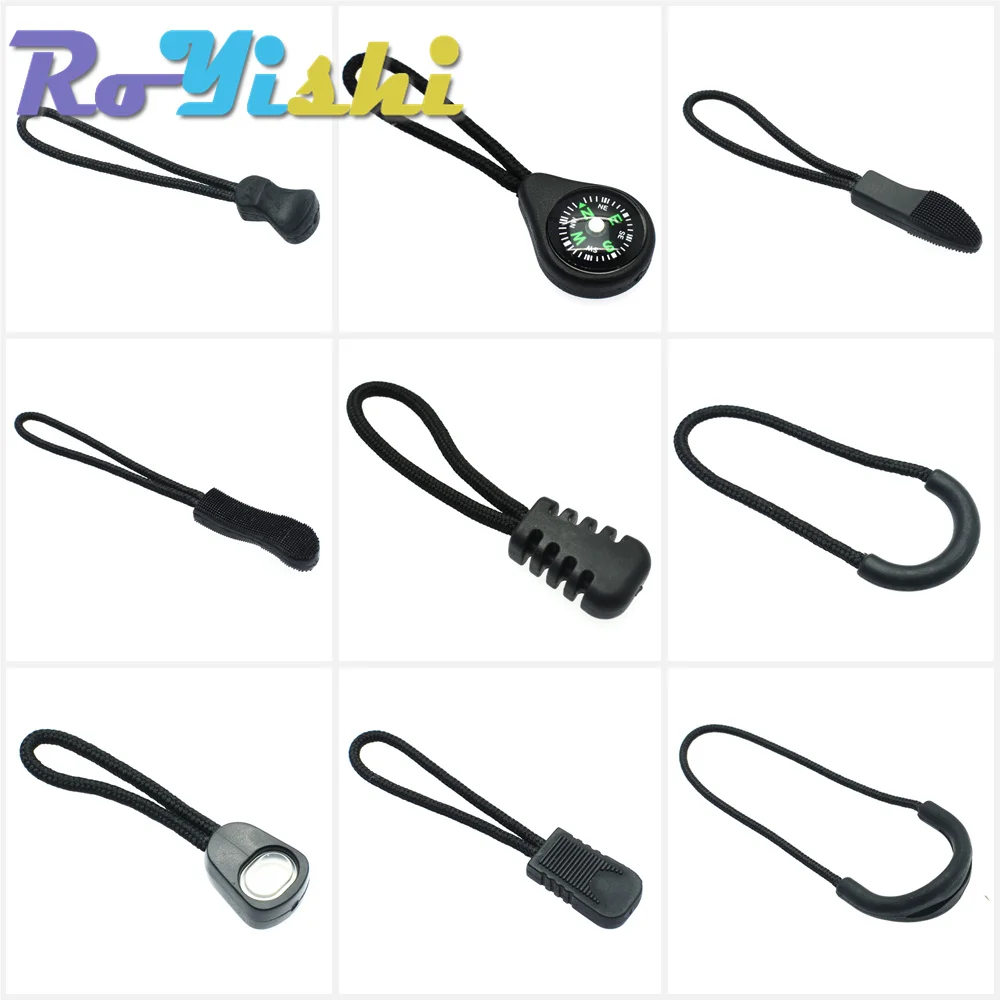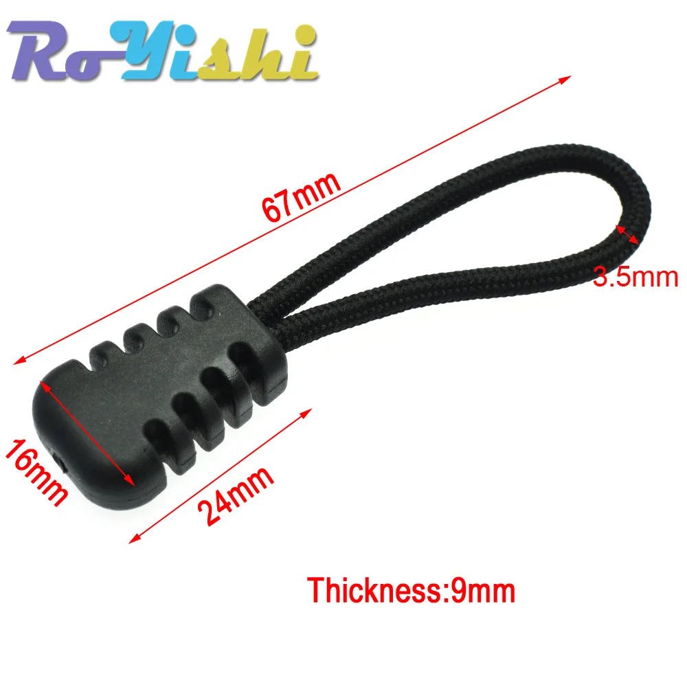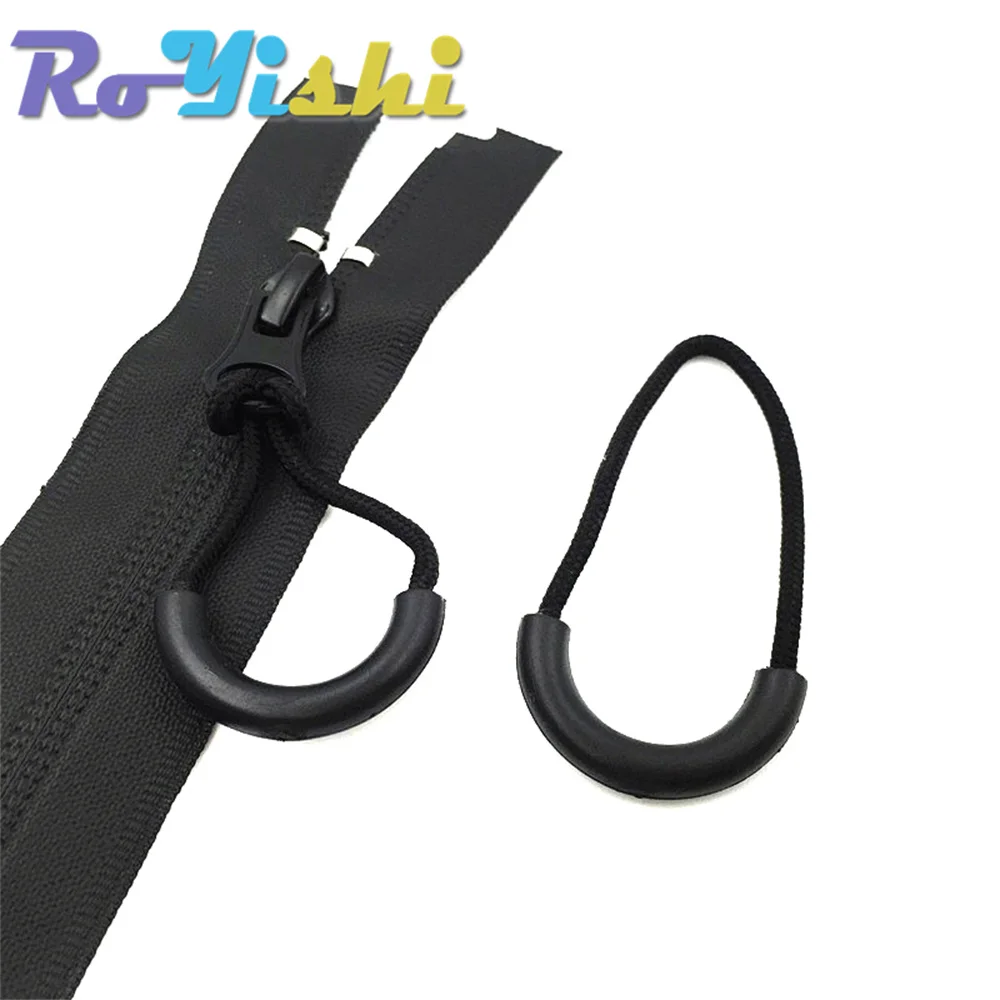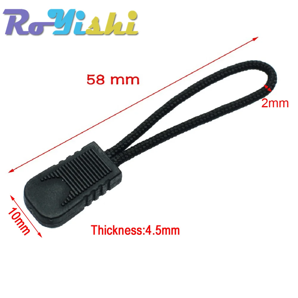 Tiradores de cremallera, extremos de cordón, Correa Lariat negra para accesorios de ropa, 10 unids/lote por paquete