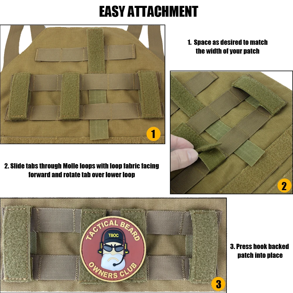 Tiras Molle para colocar parches de identificación tácticos-para parches de 3 pulgadas de alto, parches para mostrar tiras tácticas Molle para insignias-4-Count