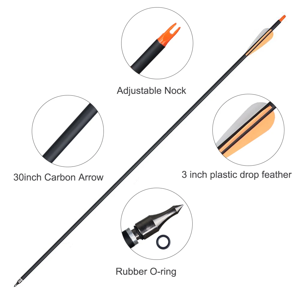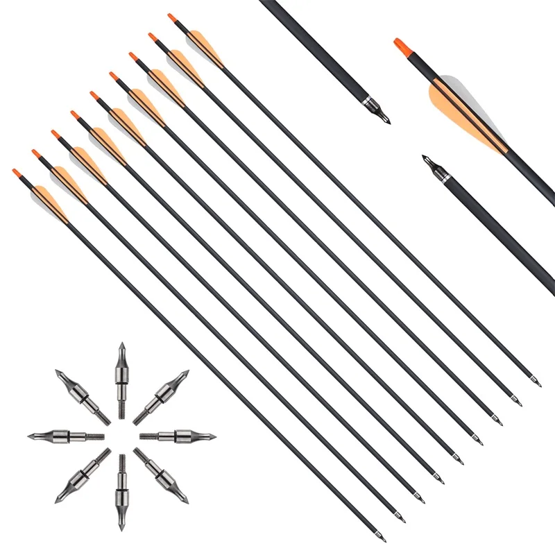 Tiro con arco de 31,5 pulgadas, naranja, mezcla de carbono, flecha de diámetro 7,8mm, columna vertebral 500 para arco tradicional, arco de caza americano, tiro
