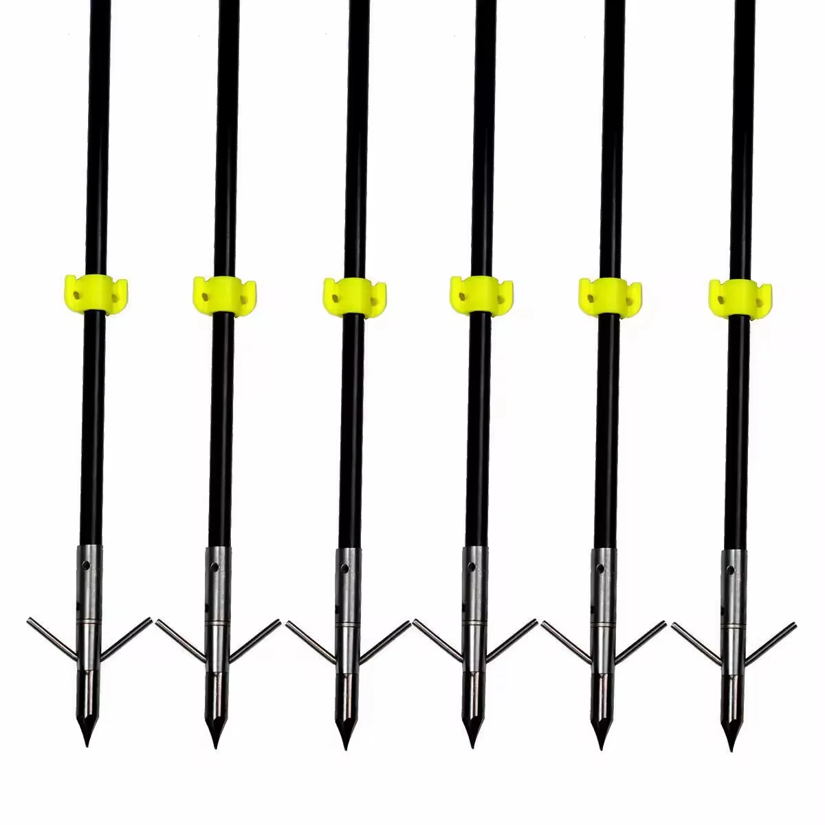 Tiro con arco, 6 uds., flechas de pesca con arco de fibra de vidrio sólida con punta de flecha de acero, deslizador amarillo para caza, flechas de arco compuesto