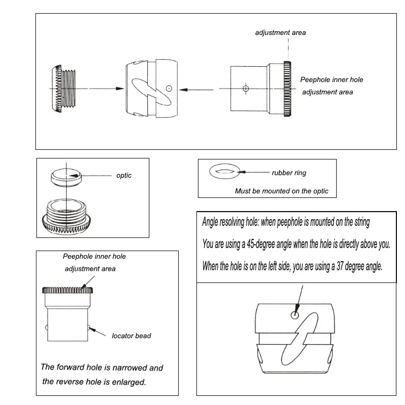 Tiro con arco diámetro Variable Peep Sight apertura 37and 45 grados/lente clarificadora #1/2/3/4 arco compuesto accesorios de tiro de caza
