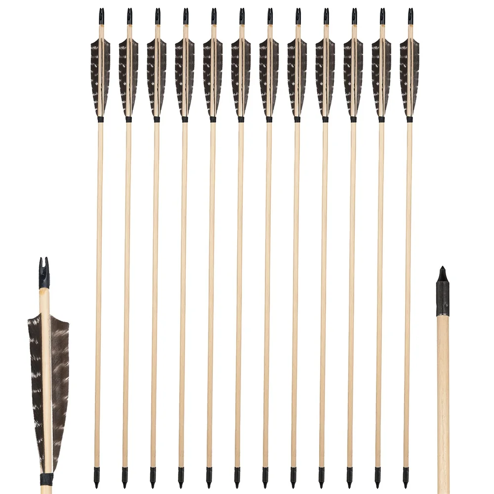 Flecha de madera para tiro con arco de 31 pulgadas, para tradicional, recurvo, largo alcance, escudo Natural, plumas, objetivo de caza al aire libre OD8mm