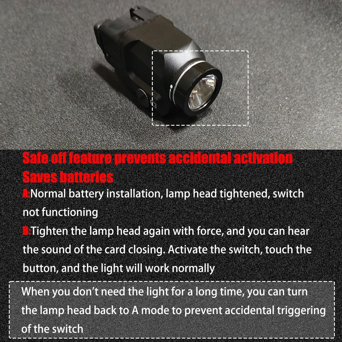 Antes de comprar TLR-7X, lea atentamente los detalles del diseño anti-mal funcionamiento de este cabezal de lámpara.El cabezal de la lámpara debe apretarse dos veces antes de poder activar el interruptor.