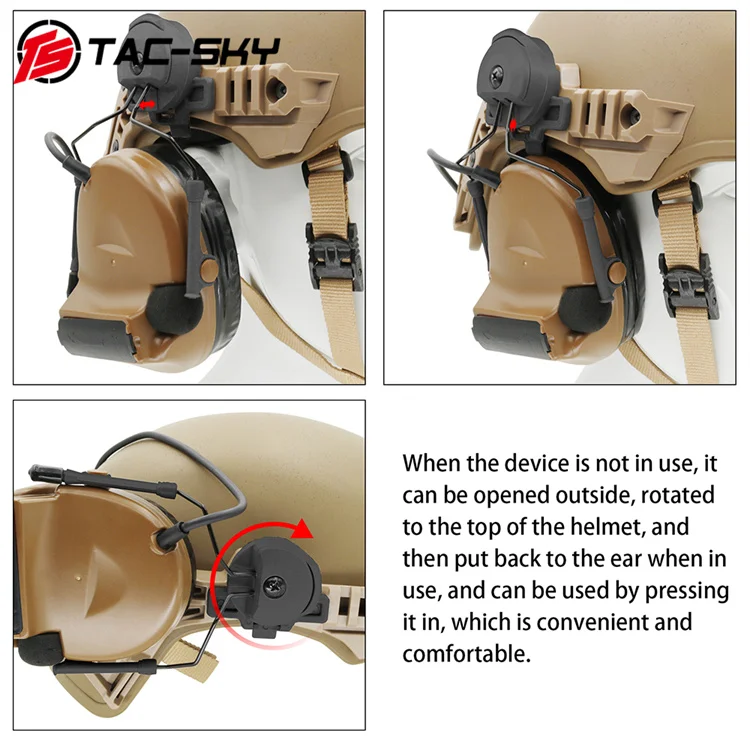 Introducción del productoEste producto es un par de soportes de rieles profesionales, que pueden fijar fácilmente los auriculares tácticos a los rieles de guía de segunda y tercera generación de los cascos tácticos Wendy, resolviendo el problema de usar auriculares tácticos dentro del casco. Los soportes pueden girar 360 grados para mejorar el rendimiento de los auriculares. Flexibilidad de colocación.