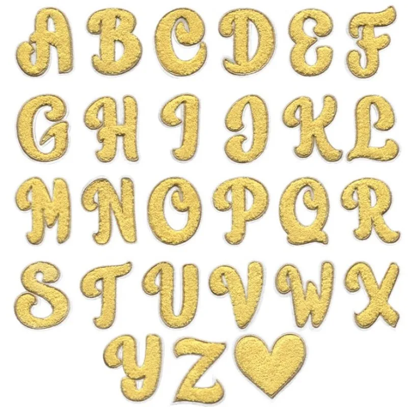 Toalla amarilla de 7cm con letras bordadas, parches de nombre para coser, alfabeto Love You, pegatinas para ropa de niños, bolsas, apliques de insignia Diy
