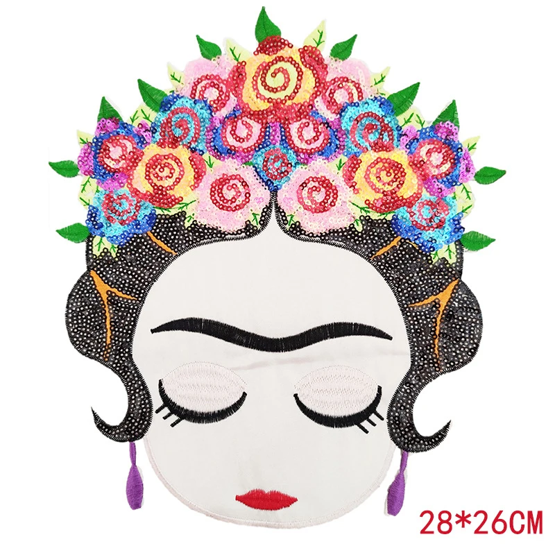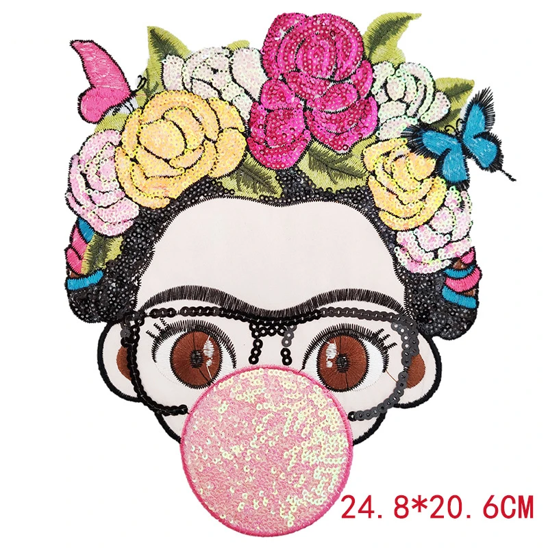 Tocados de flores mexicanas para niñas, parches para planchar, personajes de dibujos animados, parche bordado de lentejuelas para accesorios de ropa, pegatina para bolsa