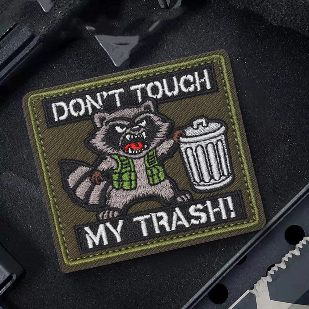 No tocar mi parche táctico de moral de basura, parche bordado con gancho y bucle de mapache divertido, insignia militar, brazalete, pegatinas para mochila