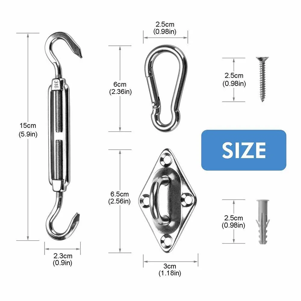 ¡El anillo en D de acero inoxidable es el componente básico de la vela sombrilla! ¡Es duradero y puede extender la vida útil de la vela sombrilla!