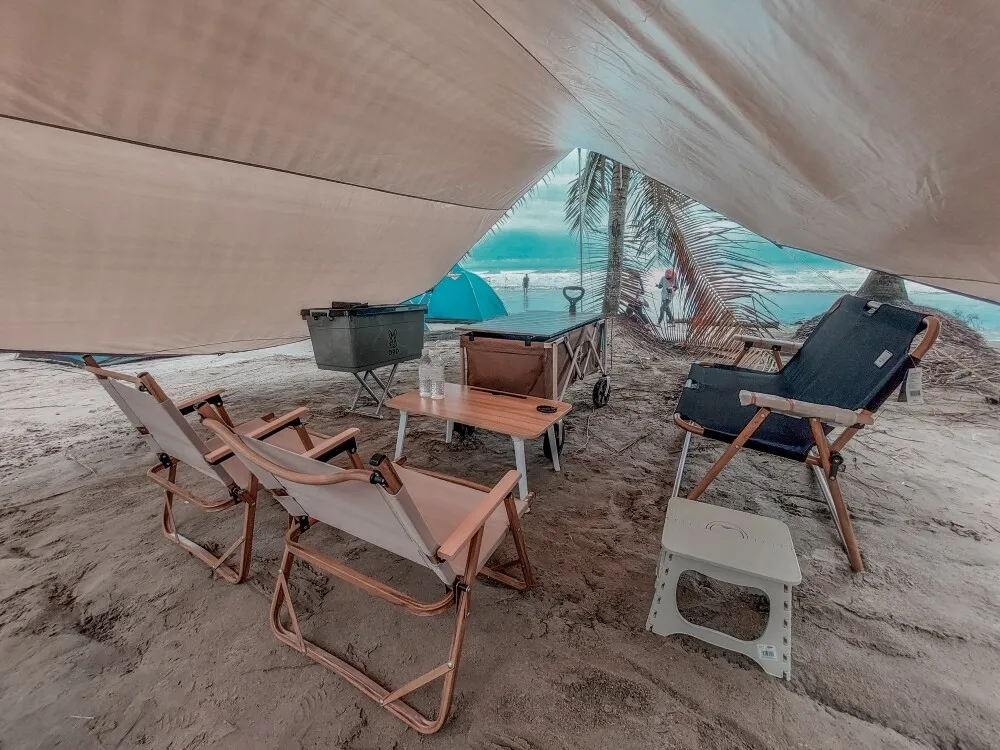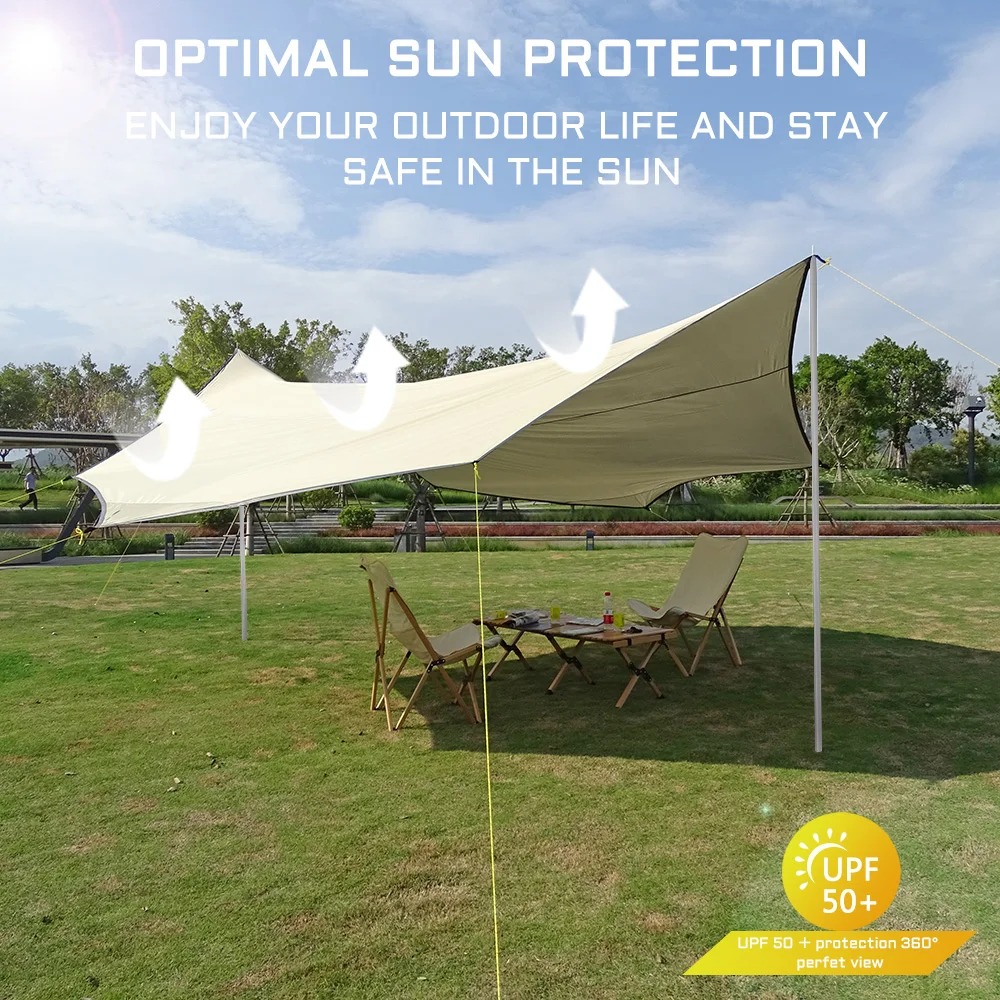 Este dosel puede atender a 6-8 personas y es muy adecuado para proporcionar sombra para que una familia salga y juegue, como acampar, hacer picnics, etc.