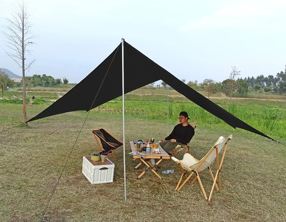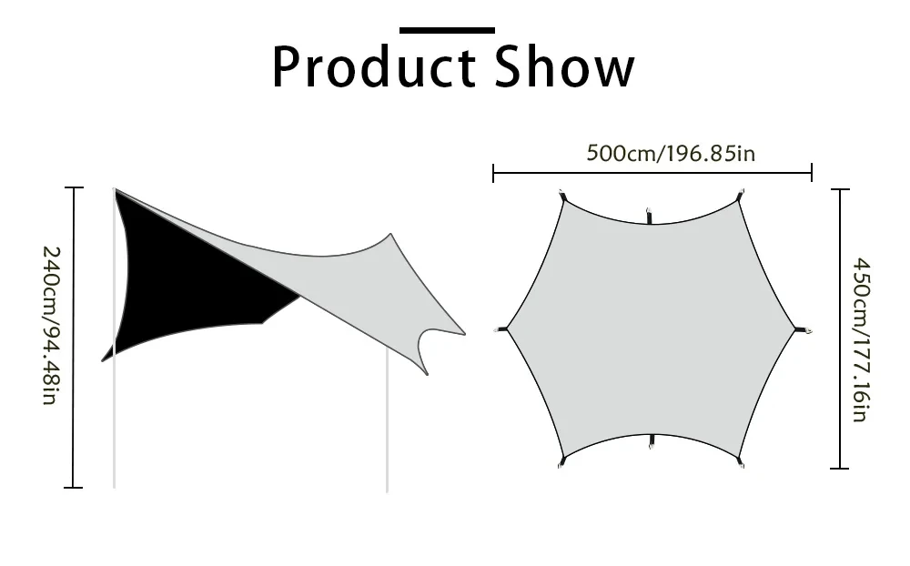 4, 5 metros x 4,5 metros, grandes áreas proporcionan más sombra. Fácil de cubrir para 8 personas.
