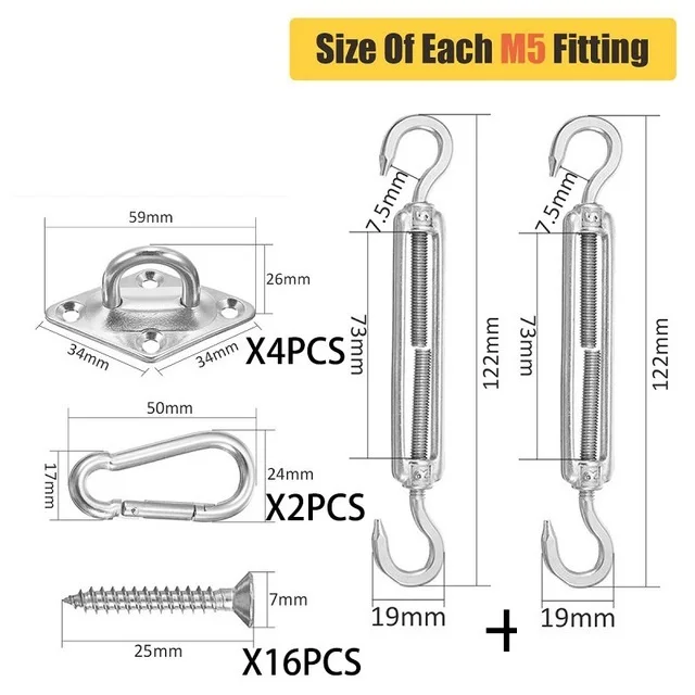 Nota: La medida del tamaño de la vela de sombra es de anillo D a anillo D.