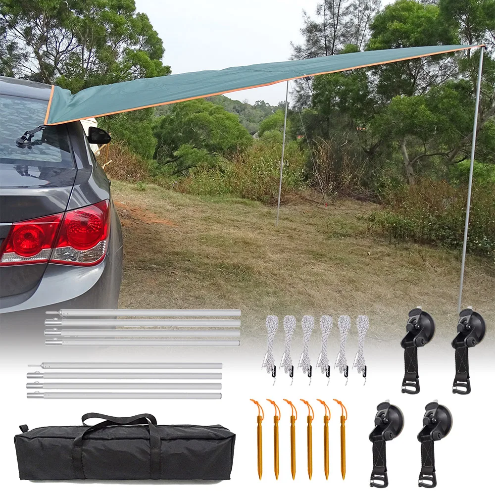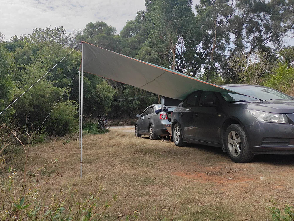 Este toldo es muy grande, el área de cubierta más grande es de 9 metros cuadrados. Tela de poliéster, resistencia a la abrasión, resistencia al desgarro. Tela anti UV, bloqueando más del 90% de los rayos ultravioleta; puede ser tan simple tienda de campaña, como una tienda a prueba de viento y lluvia, tienda de campaña para viajes al aire libre.
